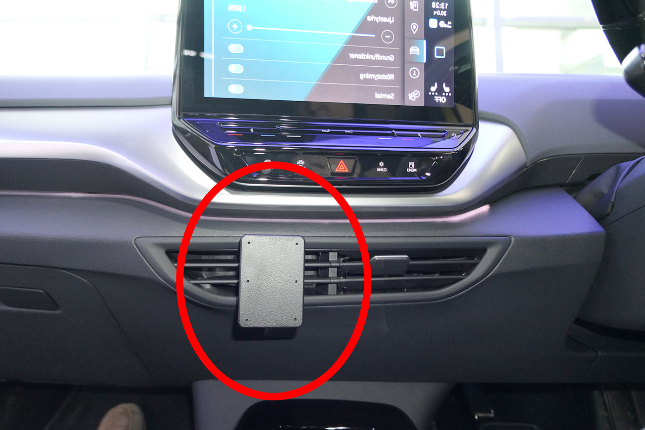 Mielőtt a ProClipet rögzítené, kérjük, tekintse meg a képeket és figyelmesen olvassa el a használati útmutatót! Fontos, hogy először a ProClipet telepítse, és csak azután szereljen be bármilyen tartót. 1. Helyezze a ProClip alsó részét a szellőzőnyílást körülvevő keretbe. 2. Nyomja a ProClip felső részét lefelé/előre és akassza az élét a szellőzőnyílást körülvevő keret alá. 3. Ez a ProClip a jobb oldali szellőzőnyílásra is telepíthető. 4. A ProClip a helyére került. |