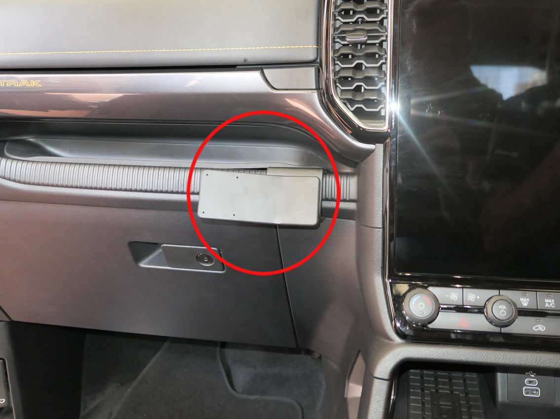 1. Nyissa ki a kesztyűtartót. A mellékelt alkoholos párnával tisztítsa meg azt a felületet, ahová kerülni fog a ProClip. Távolítsa el a ragasztócsík borítását a ProClipről. Akassza/helyezze a ProClip alsó részét a kesztyűtartó és a műszerfal közötti résbe.
