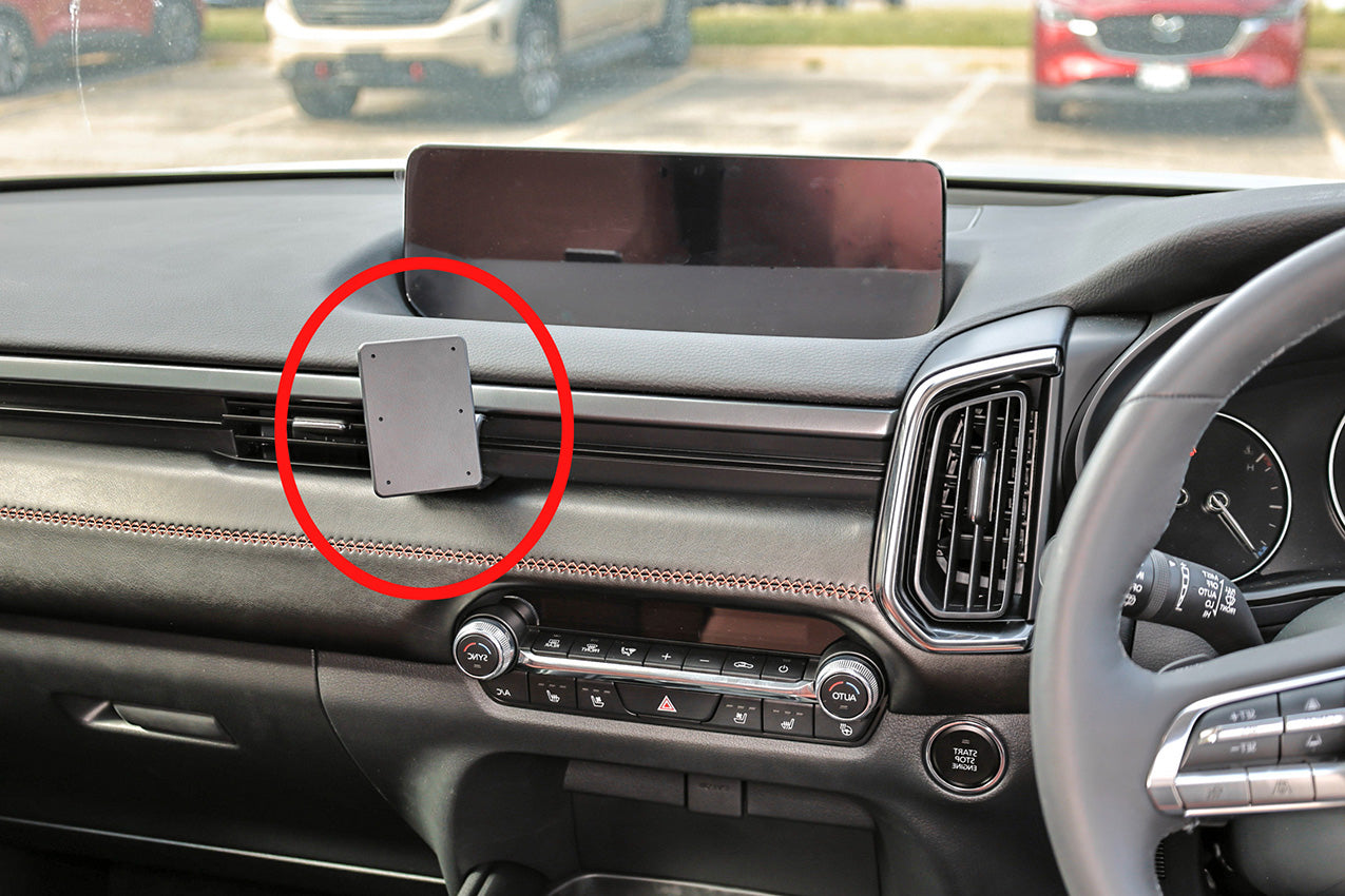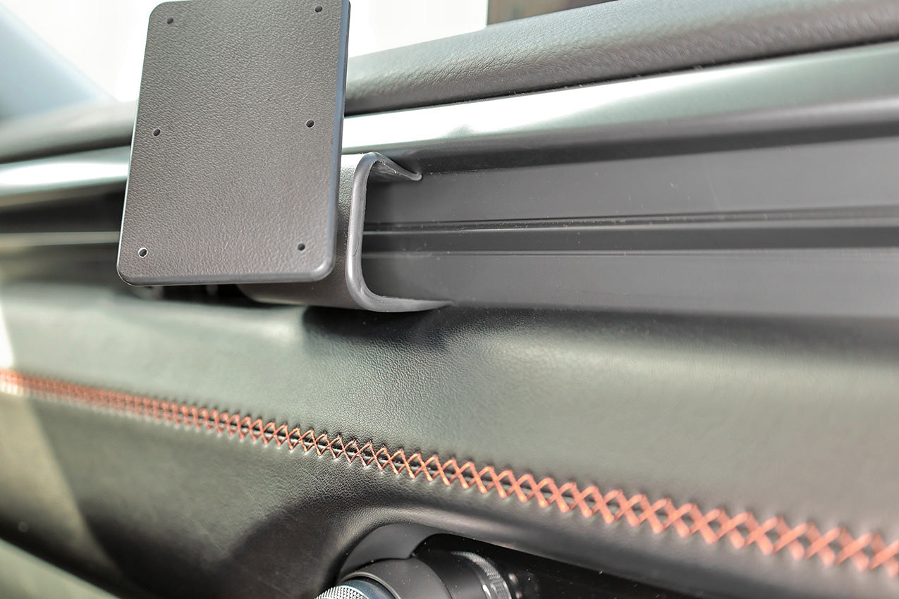 2. Helyezze a tartó alsó élét a műszerfal díszléc és a szellőzőszellőző szekció közötti résbe.