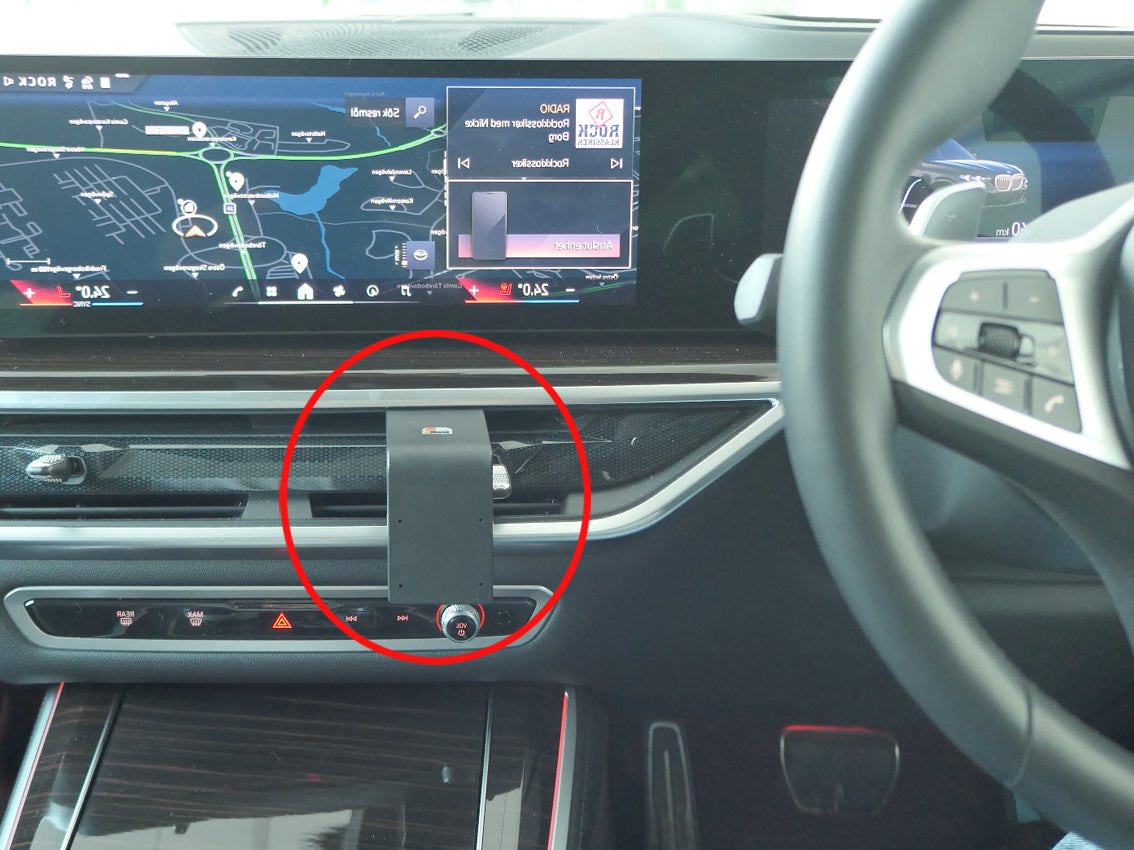 3. Akassza be a ProClip alsó részét a szellőzőnyílást körülvevő keret fölé. Ez a ProClip a bal oldali szellőzőnyílásnál rögzíthető. Az ebbe a pozícióba szerelt eszköz blokkolhatja a kijelzőt.