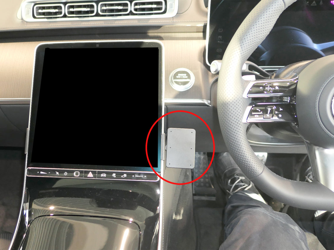 1. Csúsztassa a ProClip-et a képernyő mögé, és akassza a tartó szögletes peremét a képernyő bal oldalára.
