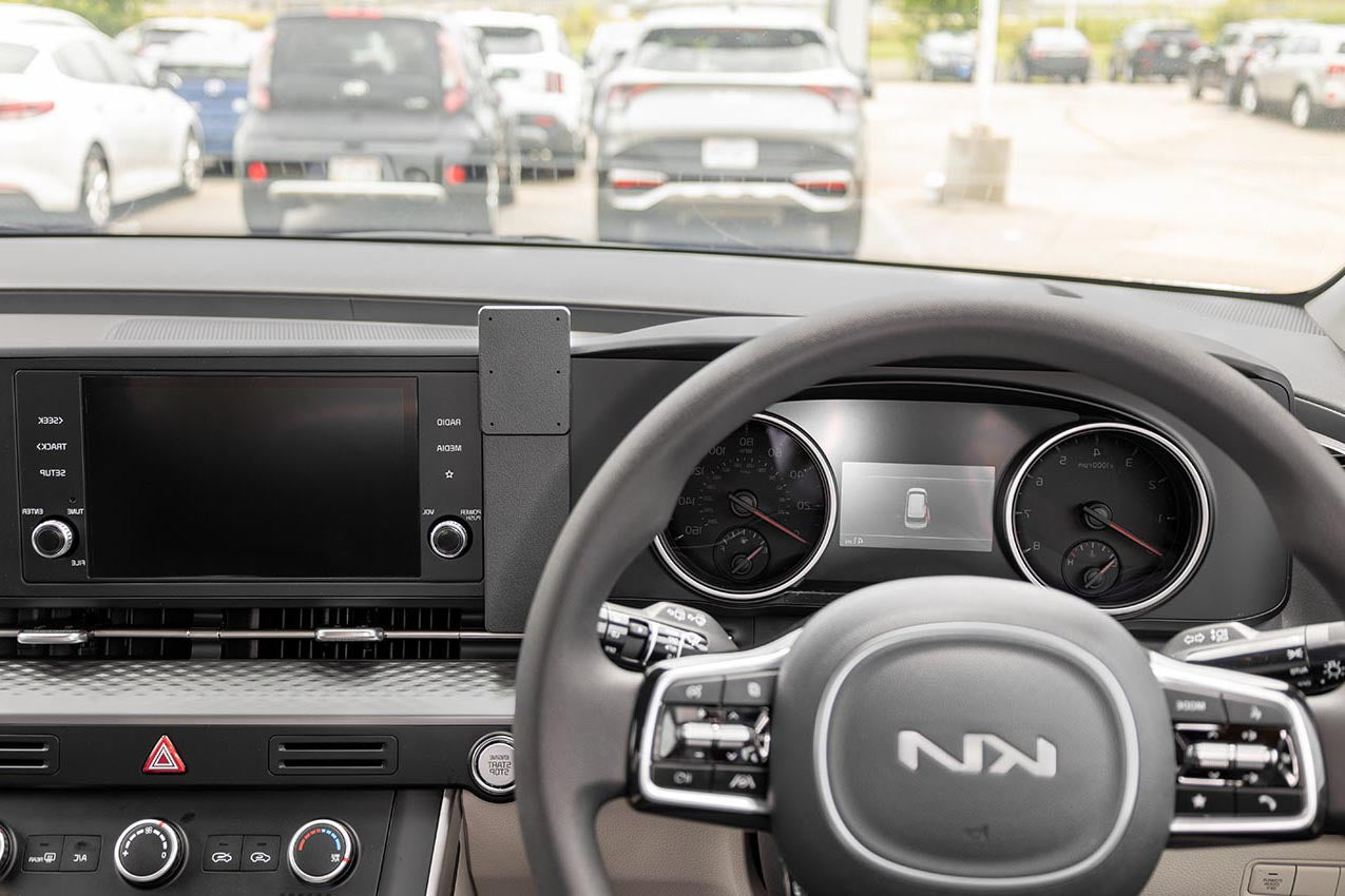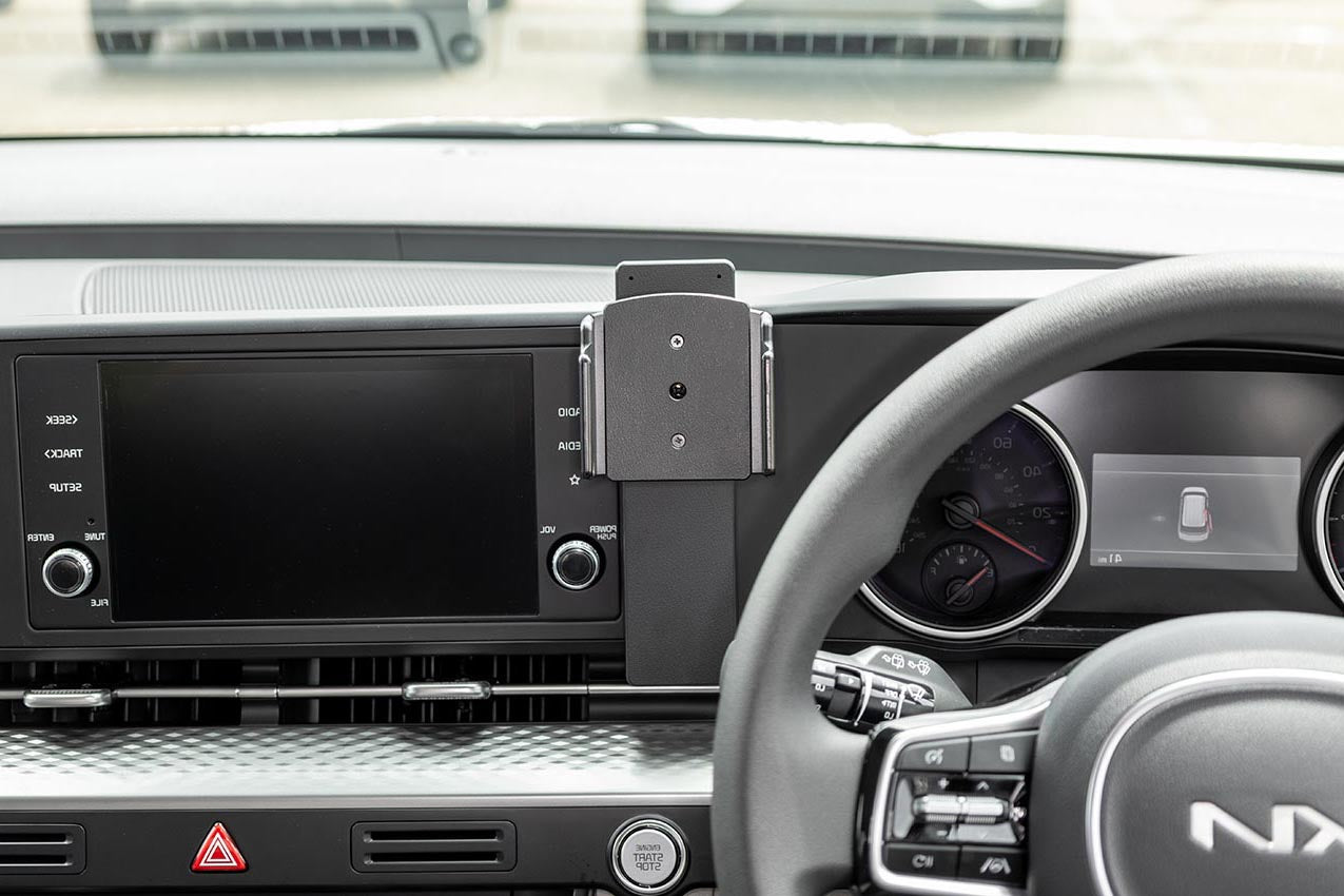 2. Húzza a tartó felső részét az infotainment panel fölé, és igazítsa a perem hajlítását a műszerfal felső keretéhez.