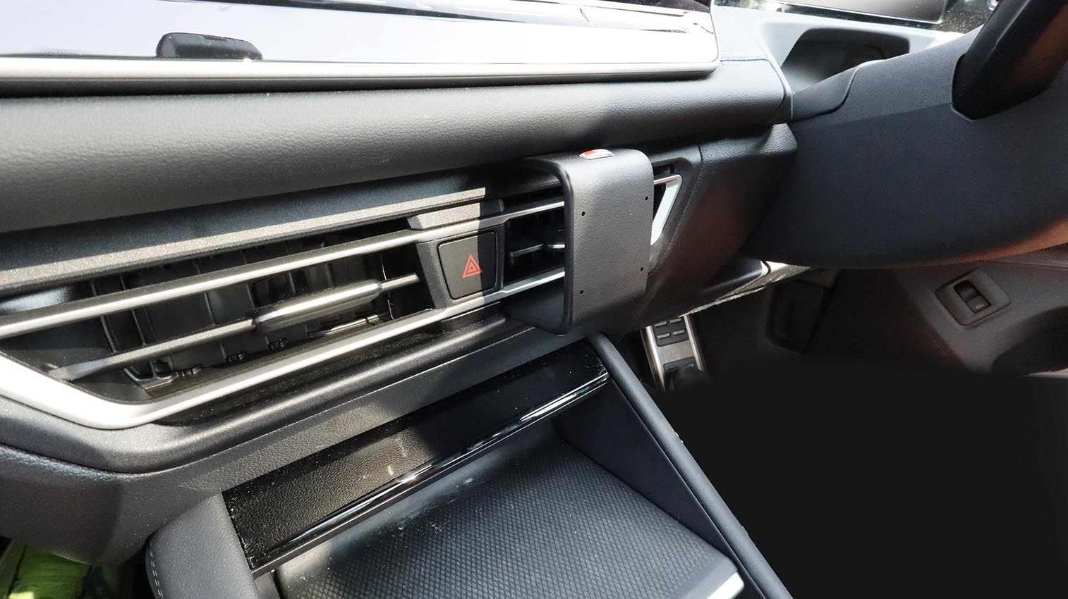 4. A ProClip tartó a helyén van. A tartó tetszőlegesen elhelyezhető a középső szellőzőnyílások szélességén belül, feltéve, hogy a felszerelt eszköz/berendezés nem akadályozza a láthatóságot és a hozzáférést. |