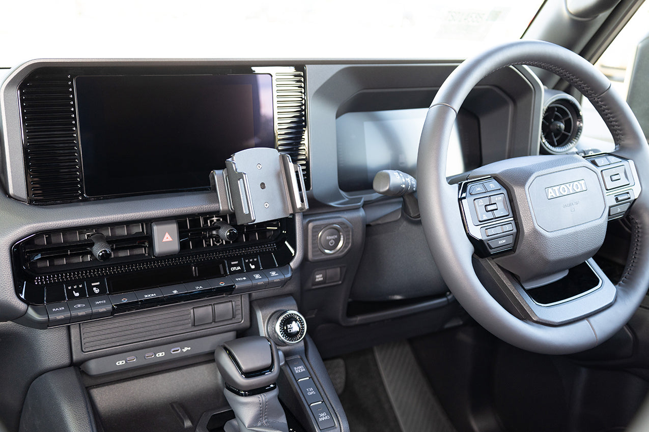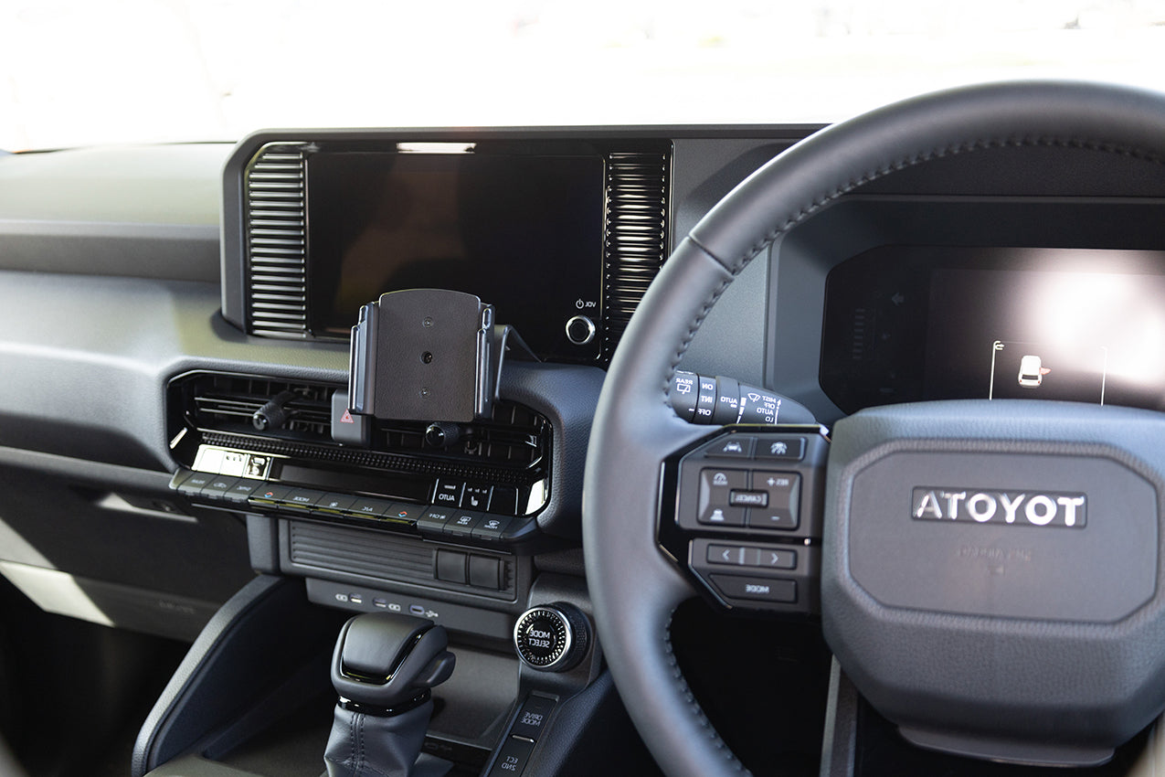 3. Húzza lefelé a tartó alsó részét, hogy a tartó kissé kinyíljon. Akassza be az alsó szélét a műszerfal panelje alá.