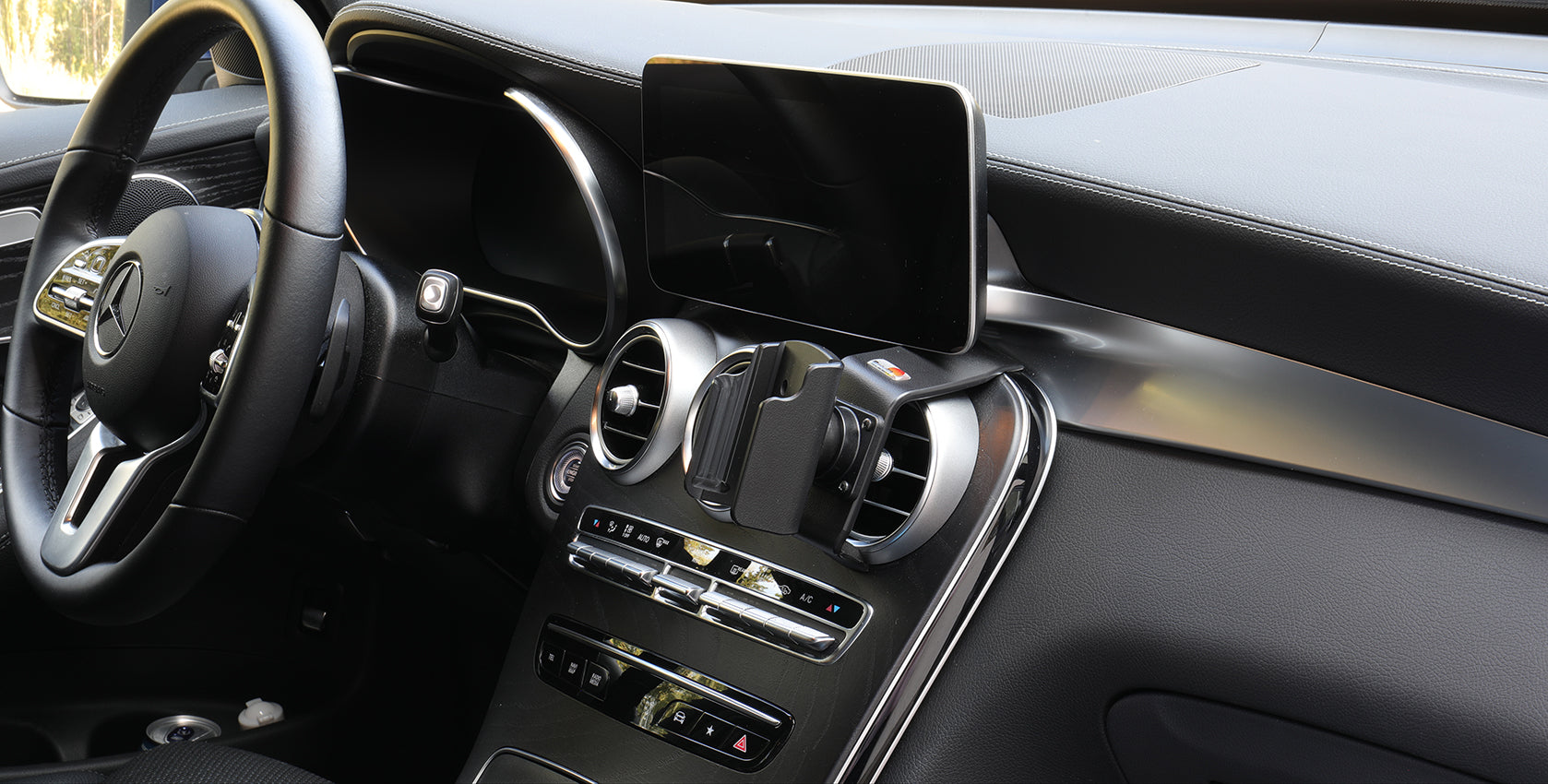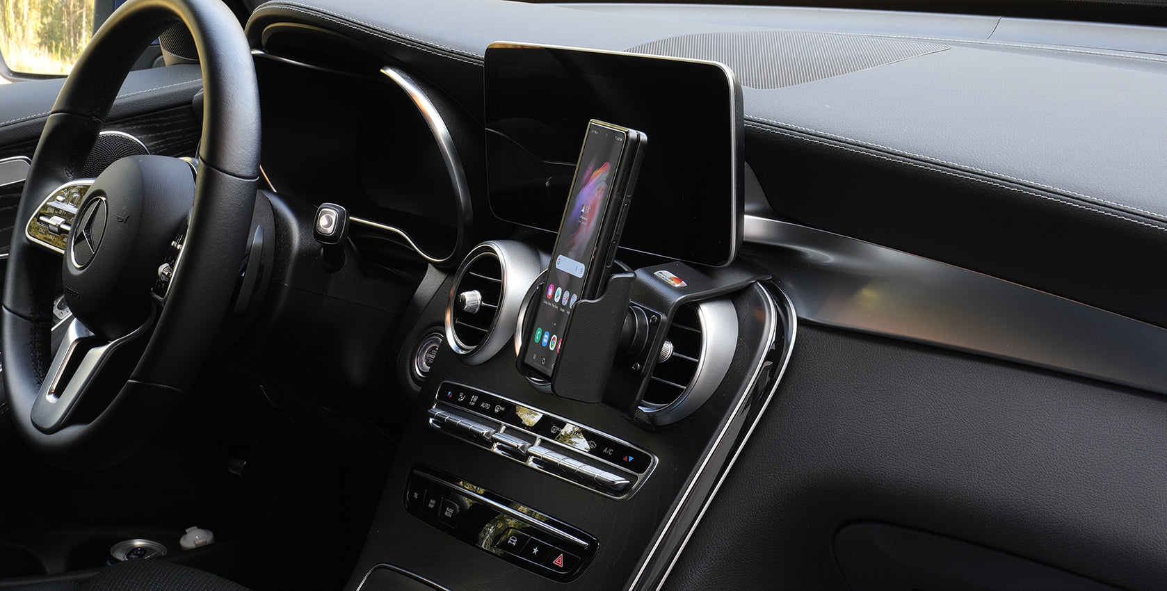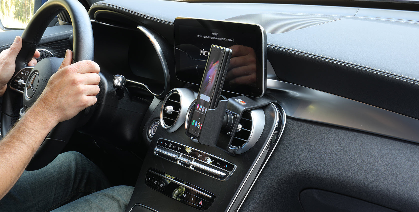 Összehajtott (nem kihajtott) helyzetben lévő készülékkel való használatra. 17°-ban billenthető és 360°-ban forgatható. A szerelőlap 42x50 mm. 4 mm-es standard AMPS furatokkal rendelkezik, hogy könnyedén rögzíthesse egy ProClip konzolra. Kiváló minőségű fekete ABS és Acetal műanyagból készül Svédországban.