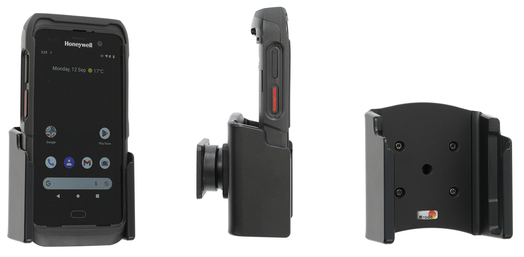 A tartó csuklóval van felszerelve, így állíthatósága miatt elkerülhetjük a fényvisszaverődést. Könnyen válthat a függőleges és vízszintes pozíciók között a tartó elfordításával. 17°-ban billenthető és 360°-ban forgatható. A szerelőlap 42x50 mm és 4 mm-es AMPS furatokkal rendelkezik. Kiváló minőségű fekete ABS és Acetal műanyagból készül Svédországban. ProClipre vagy Pedestal Mountra szereljük fel.