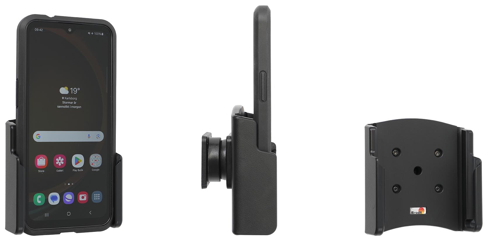 The holder is equipped with a tilt swivel so you can easily adjust the angle for better viewing, or switch between portrait and landscape mode. Tilts 17° and swivels 360°. Mounting plate 42x50 mm with 4 mm AMPS-holes. Made of high grade black ABS plastic. Color: black. Made in Sweden. For easy and optimal installation, attach the holder onto a custom ProClip Vehicle Mount, a Pedestal Mount or attach it directly to any surface.