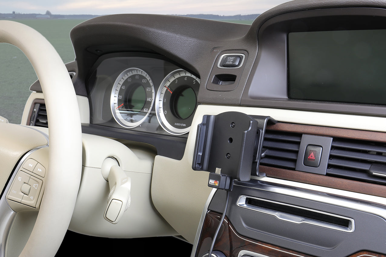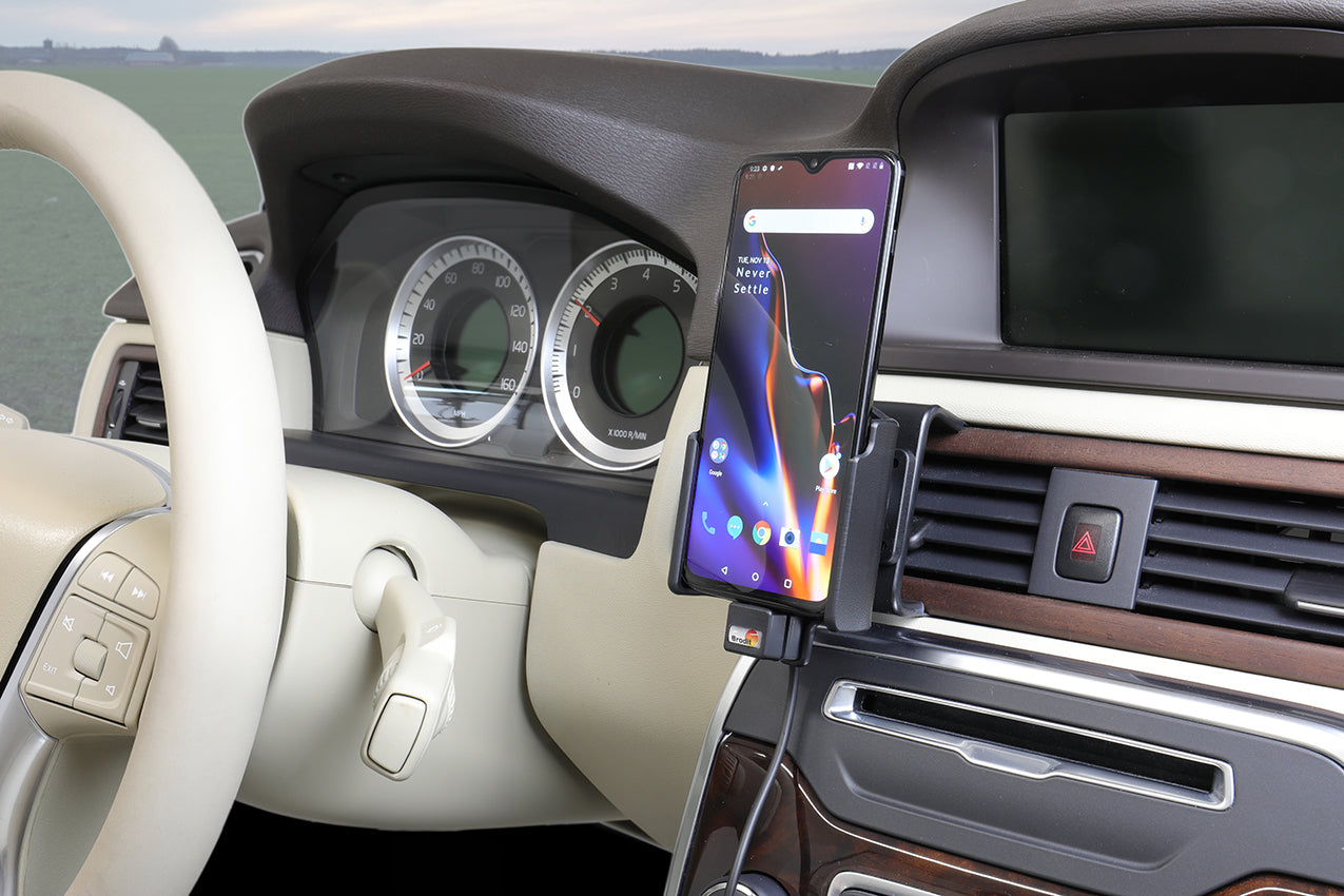 A tartó csuklóval van felszerelve, így állíthatósága miatt elkerülhetjük a fényvisszaverődést. Könnyen válthat a függőleges és vízszintes pozíciók között a tartó elfordításával. 20°-ban billenthető és 360°-ban forgatható. A szerelőlap 42x50 mm és AMPS furatokkal rendelkezik. Kiváló minőségű fekete ABS és Acetal műanyagból készül Svédországban. ProClipre szereljük fel.