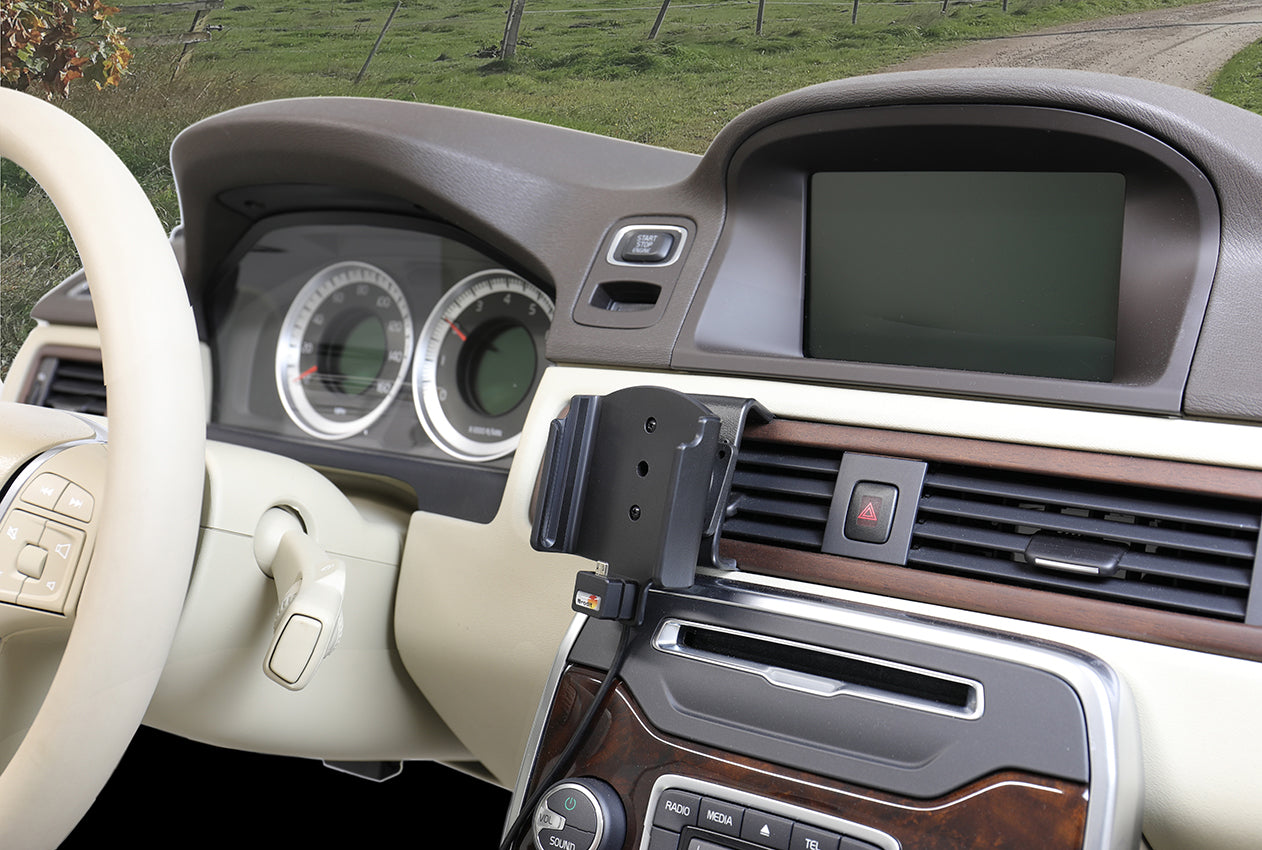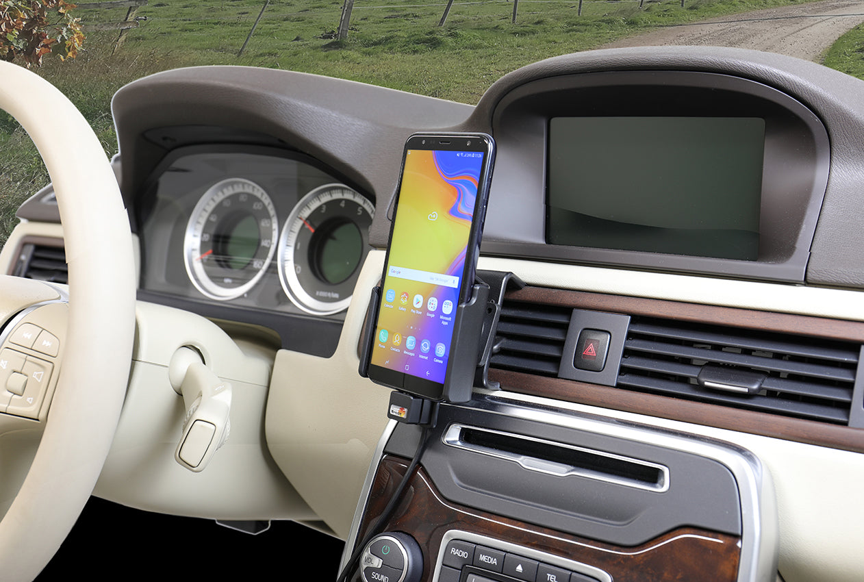 A tartó csuklóval van felszerelve, így állíthatósága miatt elkerülhetjük a fényvisszaverődést. Könnyen válthat a függőleges és vízszintes pozíciók között a tartó elfordításával. 17°-ban billenthető és 360°-ban forgatható. A szerelőlap 42x50 mm és előfúrt AMPS furatokkal + 2x3,5 mm központi furatokkal rendelkezik. Kiváló minőségű fekete ABS és Acetal műanyagból készül Svédországban. ProClipre szereljük fel.