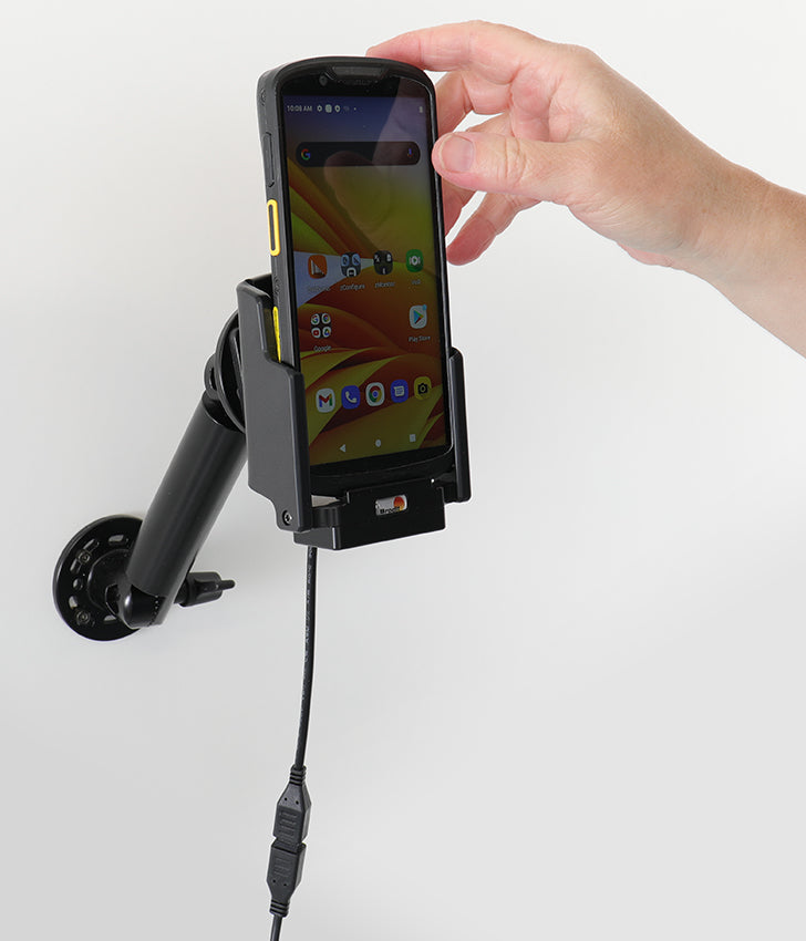 Csuklóval. 3A töltés. 12/24V. Easy-switch rendszerrel. Töltés pogo pineken keresztül. Zebra eredeti védőtok nélküli készülékhez.