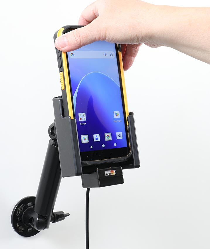 Dönthető forgóval. 2,7A töltés. 12/24V. Könnyen átkapcsolható rendszerrel. Töltés pogo csatlakozókon keresztül. Készülékhez védőgumi tokban (PRS3800X01507) kézpánttal vagy anélkül.