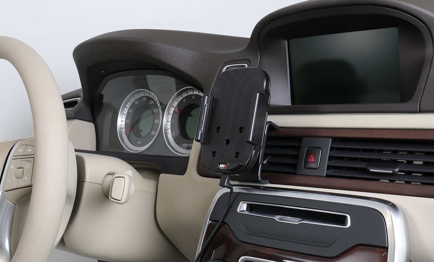 A tartó csuklóval van felszerelve, így állíthatósága miatt elkerülhetjük a fényvisszaverődést. Könnyen válthat a függőleges és vízszintes pozíciók között a tartó elfordításával. 17°-ban billenthető és 360°-ban forgatható. 12/24 Volt. A szerelőlap 42x50 mm és 4 mm-es előfúrt AMPS furatokkal rendelkezik. Kiváló minőségű fekete ABS és Acetal műanyagból készül Svédországban. ProClipre szereljük fel.