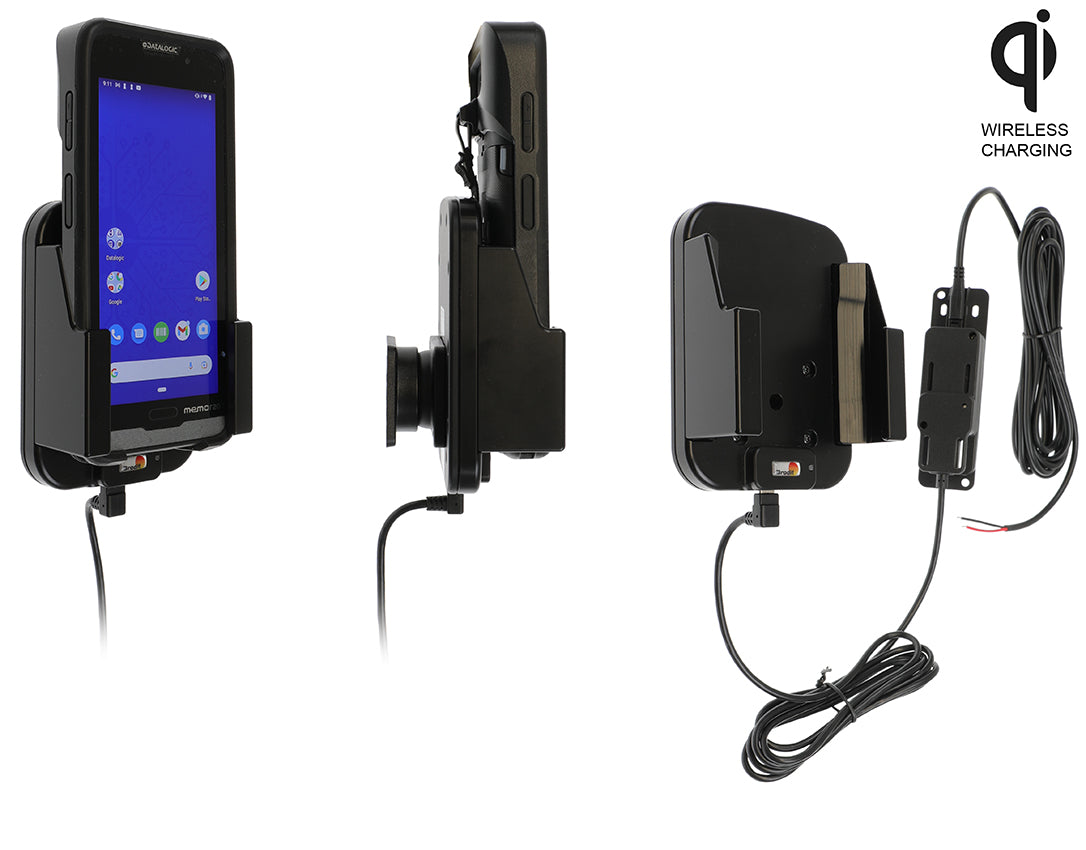 2 USB-A porttal: QC 3.0A + 2.4A. Csuklóval. 12/24 V. 5/7,5/10/15 W vezeték nélküli töltés. Datalogic eredeti gumiborításos készülékhez.