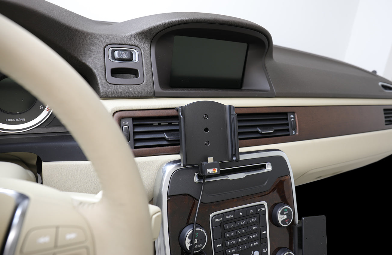A tartó csuklóval van felszerelve, így állíthatósága miatt elkerülhetjük a fényvisszaverődést. Könnyen válthat a függőleges és vízszintes pozíciók között a tartó elfordításával. 17°-ban billenthető és 360°-ban forgatható. A szerelőlap 42x50 mm és előfúrt AMPS furatokkal + 2x3,5 mm központi furatokkal rendelkezik. Kiváló minőségű fekete ABS és Acetal műanyagból készül Svédországban. ProClipre szereljük fel.