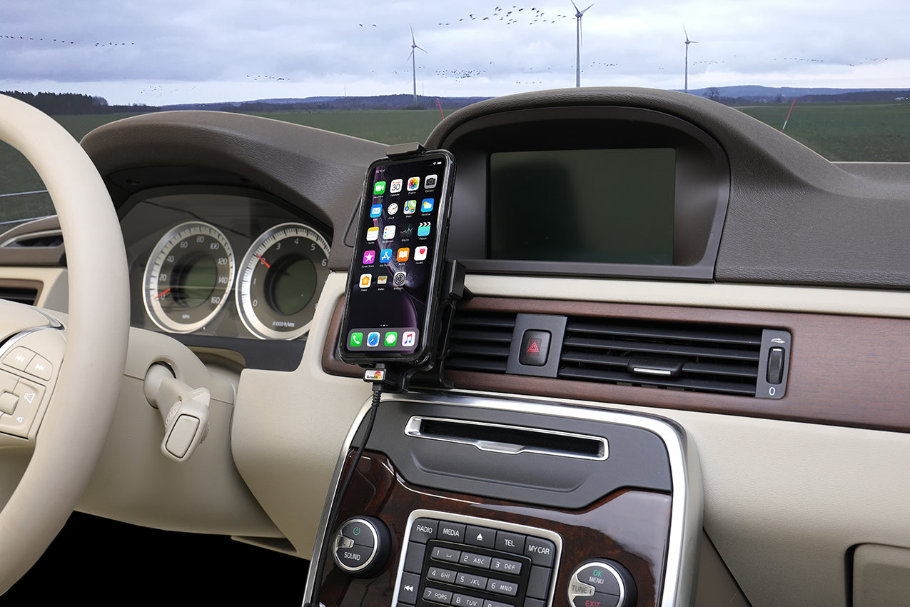 Az aktív tartó tölti az akkumulátort, amikor a tartóban van készüléke. A tartó egy letisztult és elegáns formával rendelkezik, ami jól mutat a műszerfalon. Készülékét biztonságosan tartja a tartó és a függőleges pozícióban optimális lesz a mobil vétel. A tartó Apple által jóváhagyott szivargyújtó kábellel rendelkezik, hogy csatlakoztatni tudja a jármű 12V-os aljzatához. Ahogy beteszi készülékét a tartóba, a készülék automatikusan csatlakozik a töltőre. Ha van az autójában USB csatlakozó, leválaszthatja a szivargyújtó adaptert, hogy USB kábelt csatlakoztasson a járműhöz. Töltőkábel hossza: 123 cm. Fontos! Annak érdekében, hogy tudjon audio fájlokat továbbítani a készülékéről az USB-kábelen keresztül, ezt a funkciót támogatnia kell a rádiónak az autójában. Ezt könnyedén tesztelheti úgy, hogy csatlakoztatja készülékét a rádióhoz az USB/töltő kábelen keresztül, amely a készülékhez tartozik. A töltés USB-n keresztül is működik. A tartó Acetal műanyagból készül. Könnyű betenni a készüléket a tartóba, illetve kivenni és magunkkal vinni, amikor elhagyjuk a járművet. A következő méretű tokokhoz: magasság: 150-165 mm, szélesség: 88 mm, vastagság: 2-11 mm. (11 mm-nél vastagabb tokokkal is illeszkedhet, az élek méretétől és típusától függően.) A tartó csuklóval van felszerelve, így állíthatósága miatt elkerülhetjük a fényvisszaverődést. 17°-ban forgatható minden irányba. ProClip-re szereljük fel. Ez a termék támogatja a Qualcomm QC 2.0 gyorstöltést.