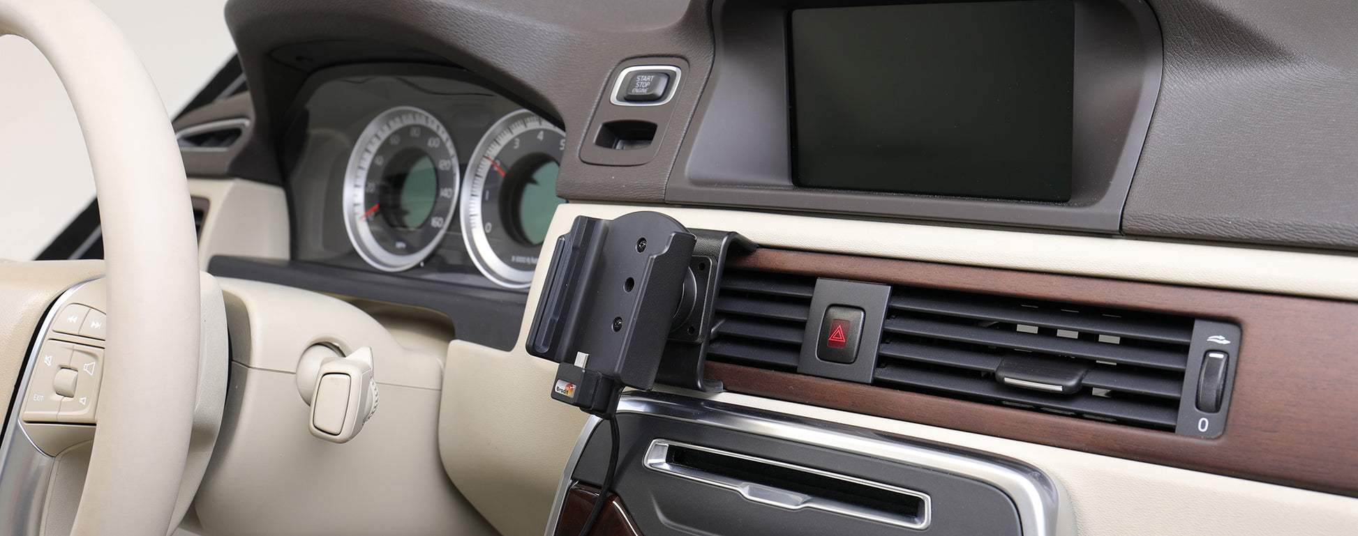 A tartó csuklóval van felszerelve, így állíthatósága miatt elkerülhetjük a fényvisszaverődést. Könnyen válthat a függőleges és vízszintes pozíciók között a tartó elfordításával. 17°-ban billenthető és 360°-ban forgatható. A szerelőlap 42x50 mm és előfúrt AMPS furatokkal rendelkezik. Kiváló minőségű fekete ABS és Acetal műanyagból készül Svédországban. ProClipre szereljük fel.