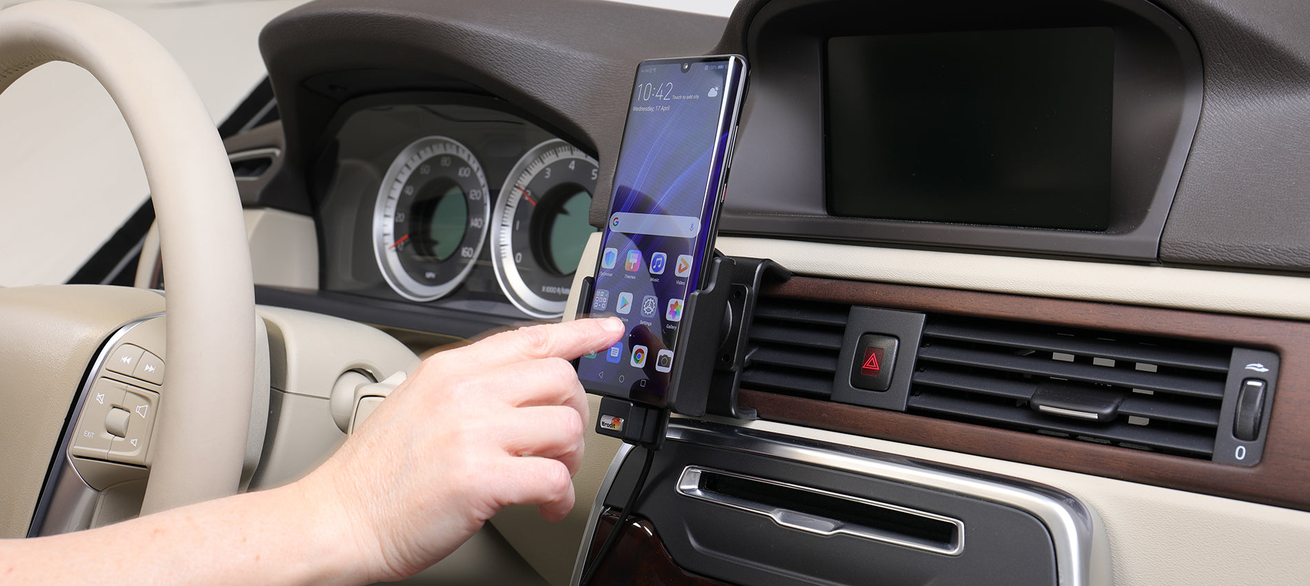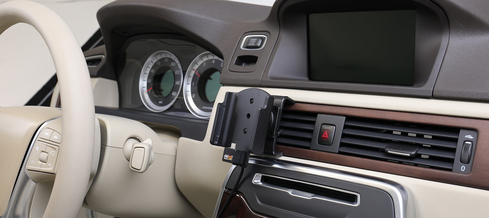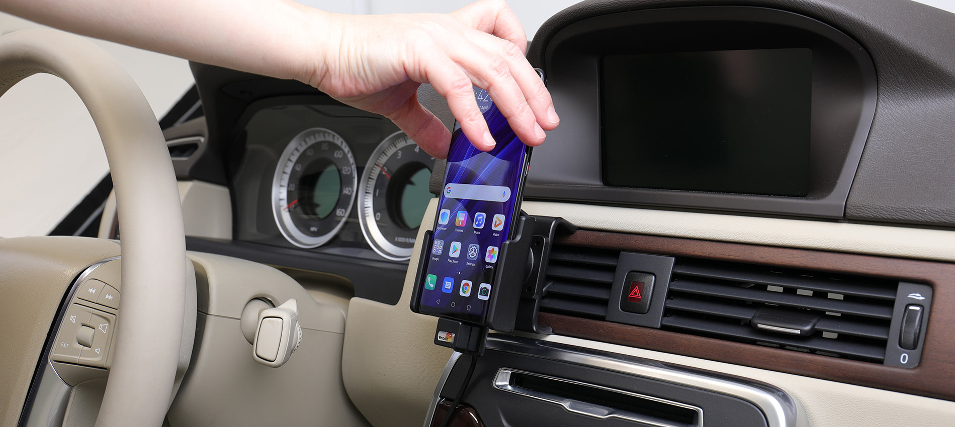 A tartó csuklóval van felszerelve, így állíthatósága miatt elkerülhetjük a fényvisszaverődést. Könnyen válthat a függőleges és vízszintes pozíciók között a tartó elfordításával. 17°-ban billenthető és 360°-ban forgatható. A szerelőlap 42x50 mm és előfúrt AMPS furatokkal rendelkezik. Kiváló minőségű fekete ABS és Acetal műanyagból készül Svédországban. ProClipre szereljük fel.