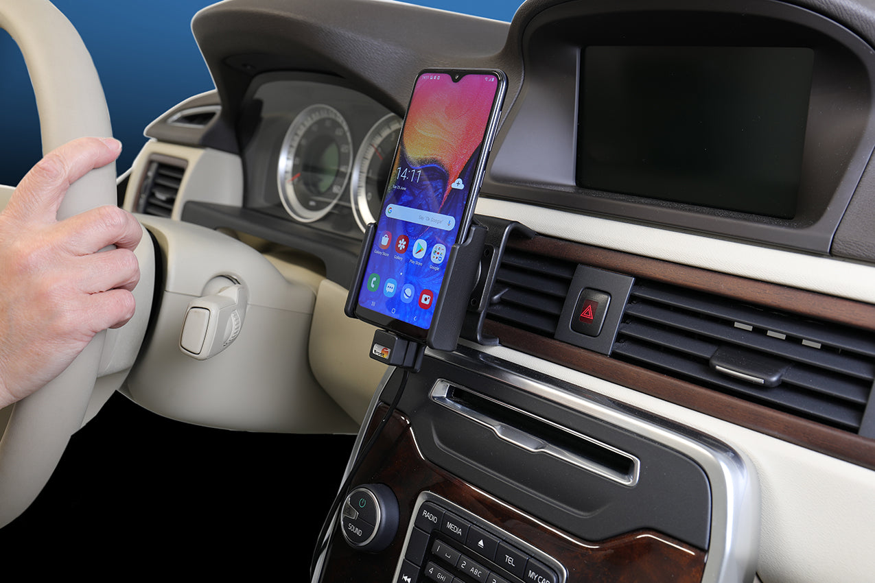 A tartó csuklóval van felszerelve, így állíthatósága miatt elkerülhetjük a fényvisszaverődést. Könnyen válthat a függőleges és vízszintes pozíciók között a tartó elfordításával. 17°-ban billenthető és 360°-ban forgatható. A szerelőlap 42x50 mm és előfúrt AMPS furatokkal rendelkezik. Kiváló minőségű fekete ABS és Acetal műanyagból készül Svédországban. ProClipre szereljük fel.