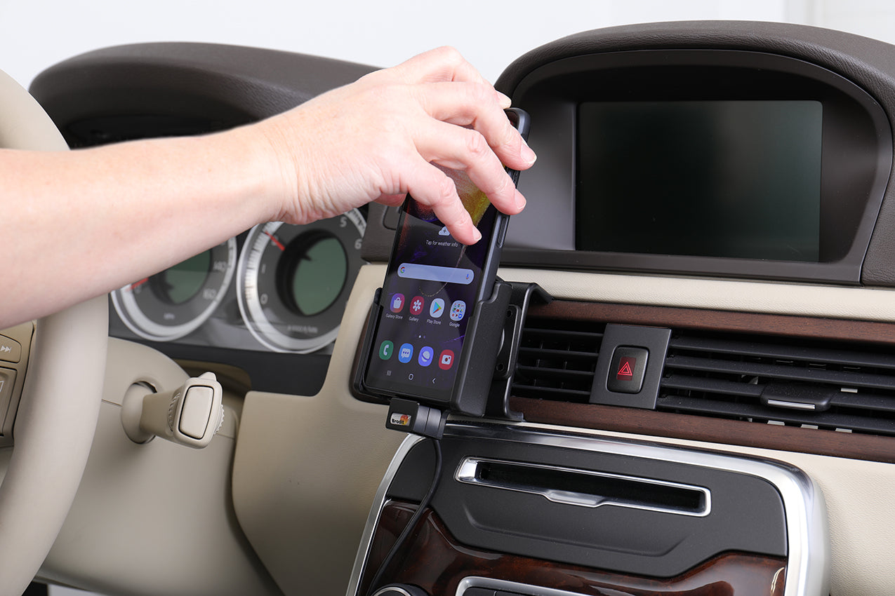 A tartó csuklóval van felszerelve, így állíthatósága miatt elkerülhetjük a fényvisszaverődést. Könnyen válthat a függőleges és vízszintes pozíciók között a tartó elfordításával. 17°-ban billenthető és 360°-ban forgatható. A szerelőlap 42x50 mm és 4 előfúrt AMPS furattal rendelkezik. Kiváló minőségű fekete ABS és Acetal műanyagból készül Svédországban. ProClipre szereljük fel.