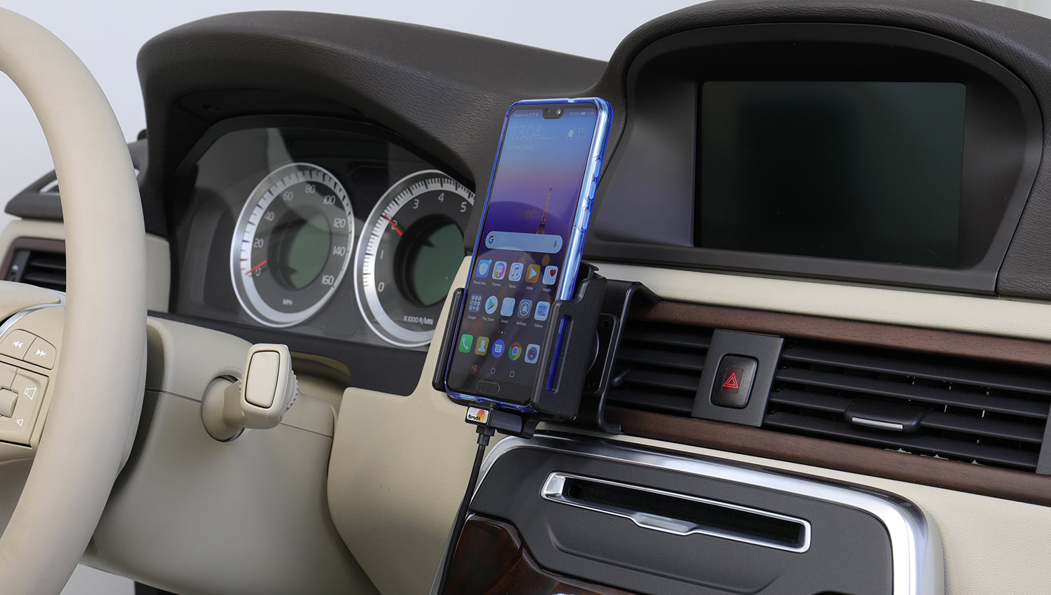 A tartó használata előtt be kell állítania a tartó szélességét, hogy az megfeleljen az eszközének, így a telefonja szilárdan áll majd függőleges helyzetben a maximális mobilhálózati vétel érdekében. A tartó elegáns és diszkrét kialakítású, amely jól illeszkedik a jármű belső teréhez. Rögzítse a ProClip rögzítőplatformra.