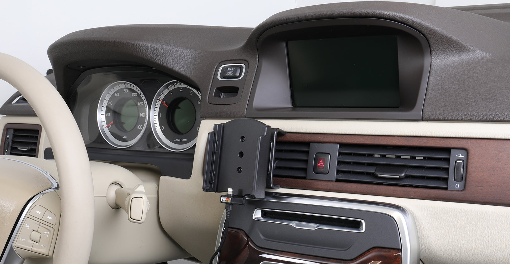 A tartó csuklóval van felszerelve, így állíthatósága miatt elkerülhetjük a fényvisszaverődést. Könnyen válthat a függőleges és vízszintes pozíciók között a tartó elfordításával. 17°-ban billenthető és 360°-ban forgatható. A szerelőlap 42x50 mm és 4 előfúrt AMPS furattal rendelkezik. Kiváló minőségű fekete ABS és Acetal műanyagból készül Svédországban. ProClipre szereljük fel.