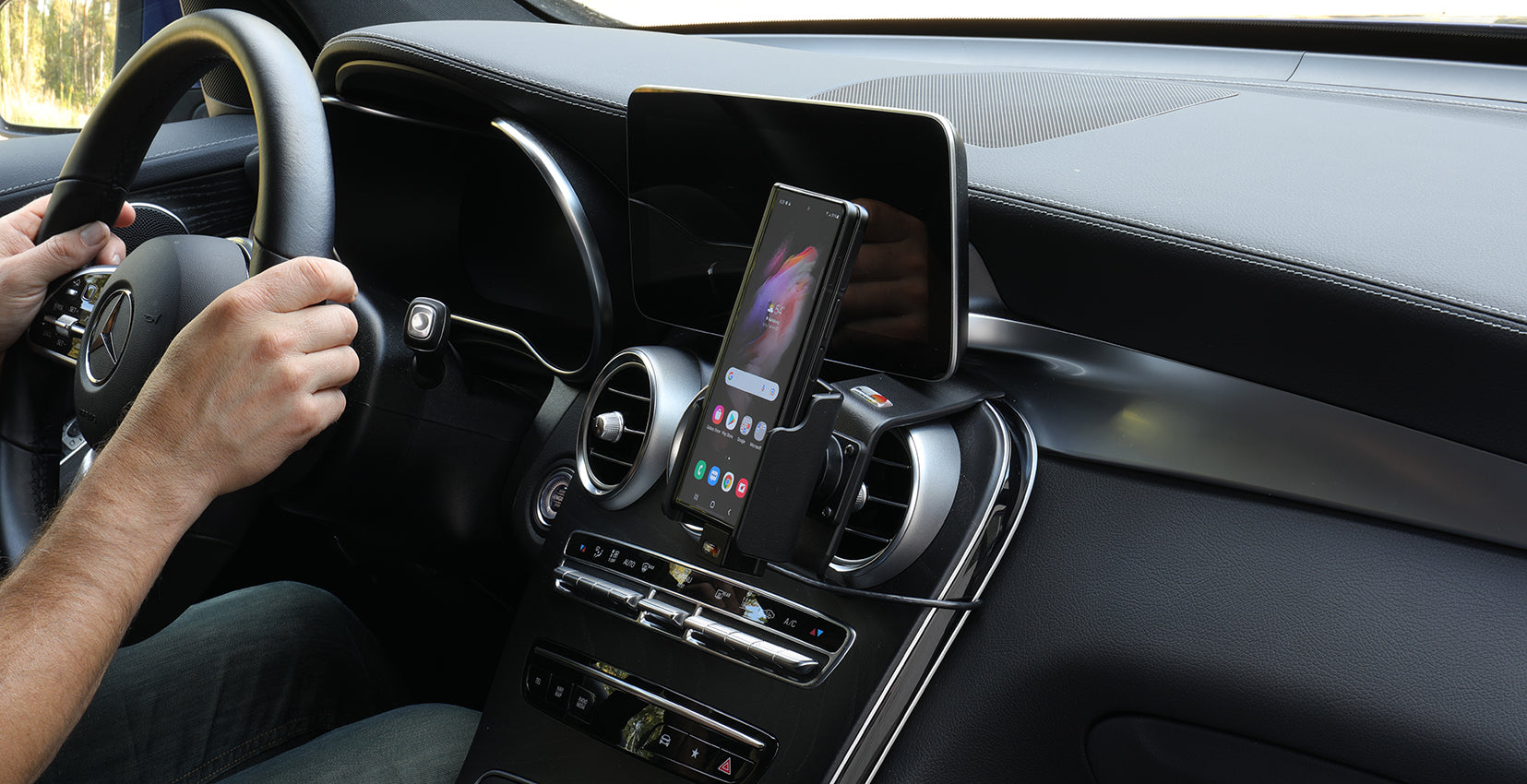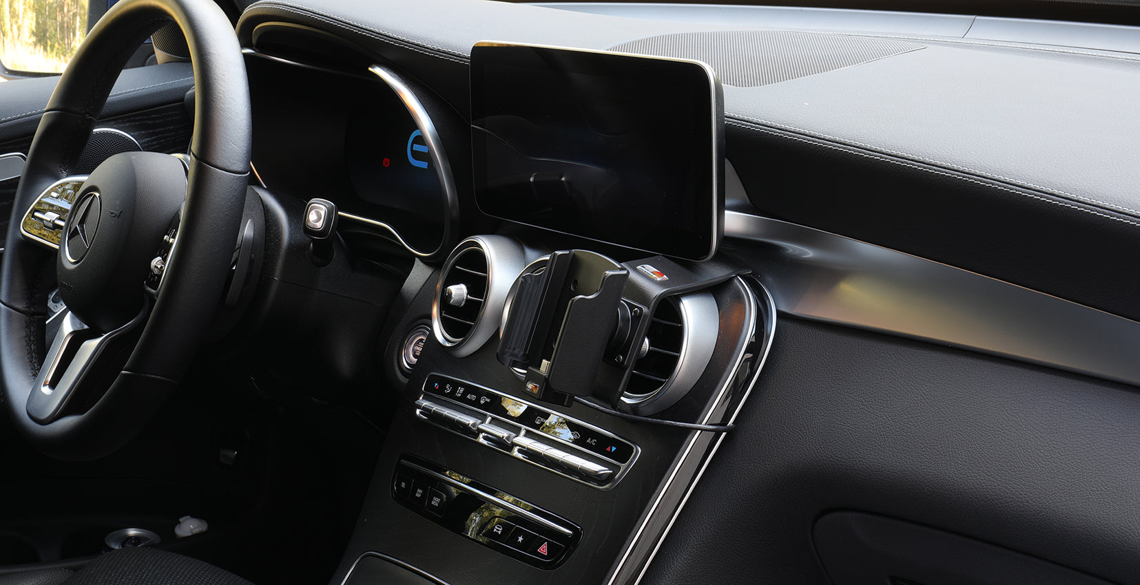 A tartó csuklóval van felszerelve, így állíthatósága miatt elkerülhetjük a fényvisszaverődést. 17°-ban billenthető és 360°-ban forgatható. A szerelőlap 42x50 mm és 4 mm-es előfúrt AMPS furatokkal rendelkezik. Kiváló minőségű fekete ABS és Acetal műanyagból készül Svédországban. ProClipre szereljük fel.