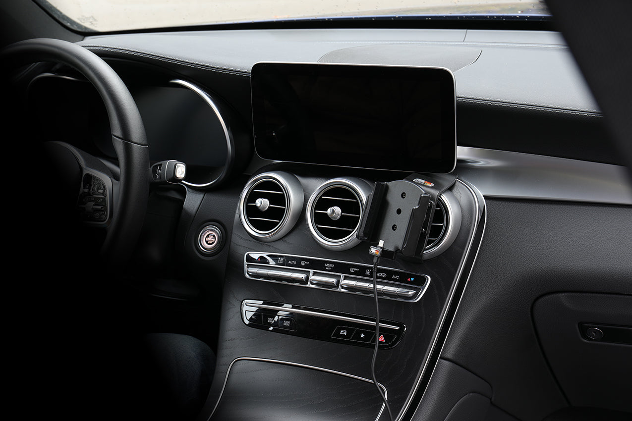 A tartó csuklóval van felszerelve, így állíthatósága miatt elkerülhetjük a fényvisszaverődést. Könnyen válthat a függőleges és vízszintes pozíciók között a tartó elfordításával. 17°-ban billenthető és 360°-ban forgatható. A szerelőlap 42x50 mm és 4 előfúrt AMPS furattal rendelkezik. Kiváló minőségű fekete ABS és Acetal műanyagból készül Svédországban. ProClipre szereljük fel.