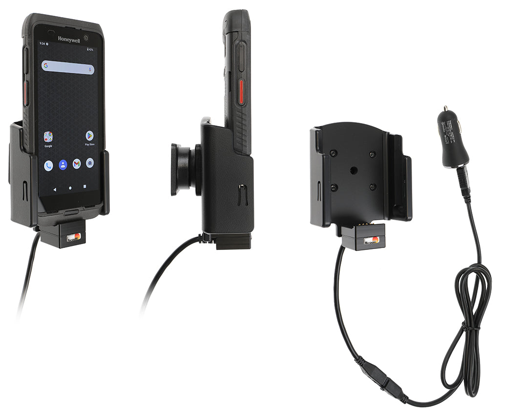 With USB-A cable + cig-plug adapter with 2 USB-A ports: QC 3.0A + 2.4A. With tilt swivel. 12/24 Volt. For device with/without extended battery (CT4X-BTEC-001), handstrap (CT47-HS-3PK-2) (CT47-HS-FM). With Easy-switching system.