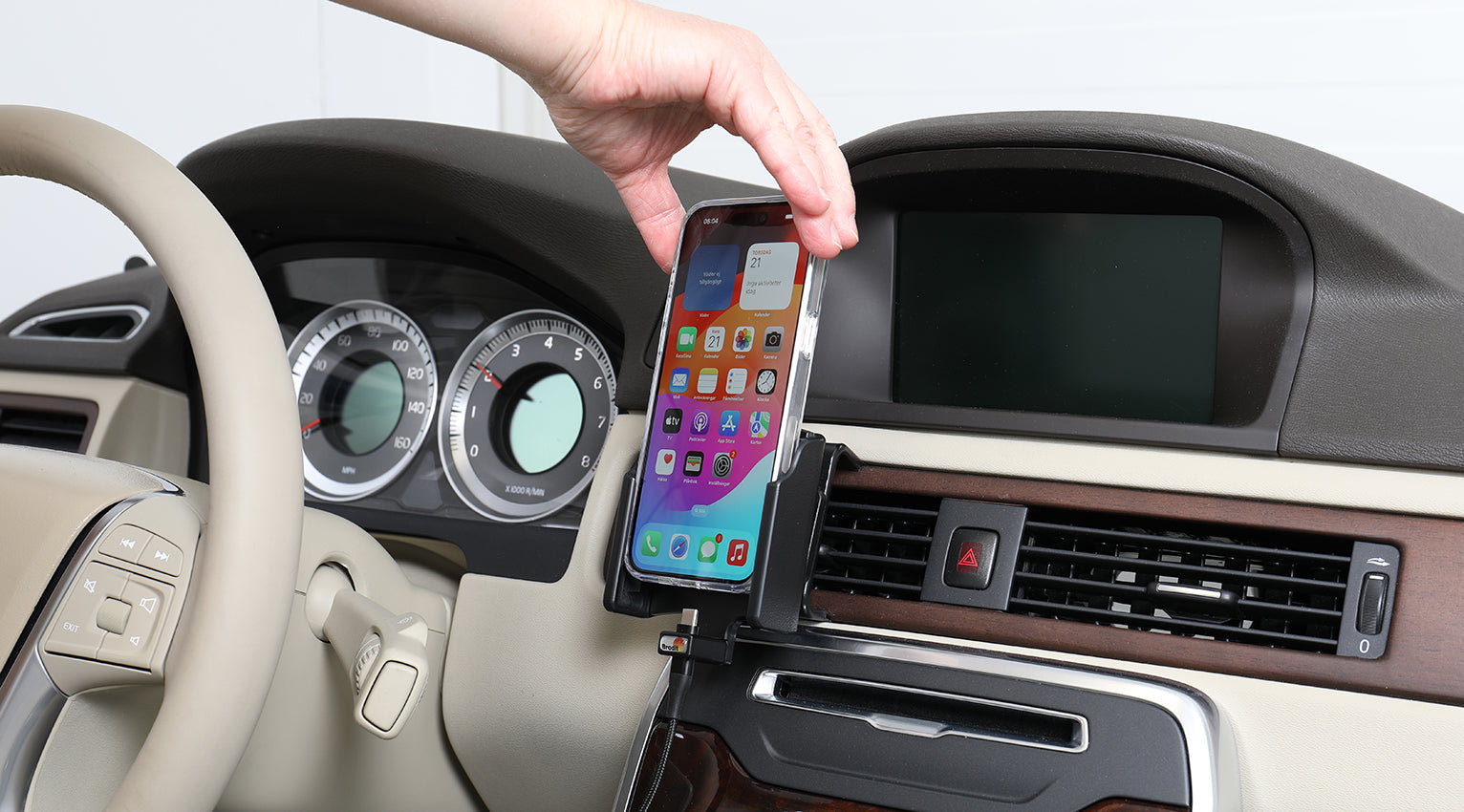 A tartó dönthető forgóval van felszerelve, így könnyen beállíthatja a szöget a jobb látás érdekében, vagy válthat álló és fekvő mód között. 17°-ban dönthető és 360°-ban forgatható. Szerelőlap 42x50 mm, 4 mm-es AMPS-lyukakkal. Magas minőségű fekete ABS/Acetal műanyagból készült. Svédországban készült. Rögzítse egy ProClip rögzítőplatformra.