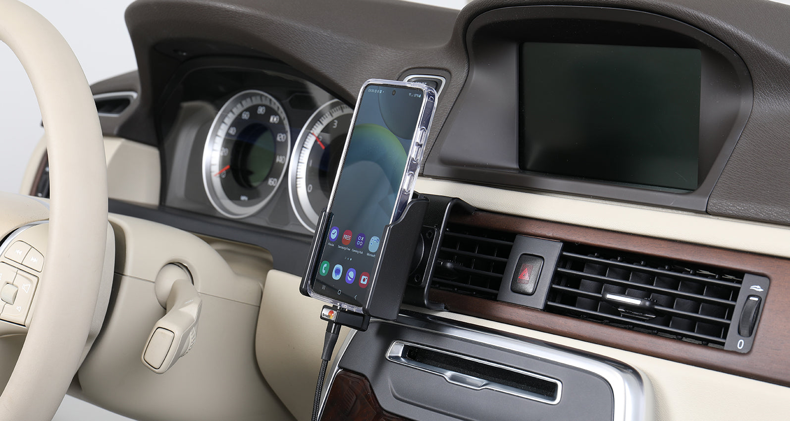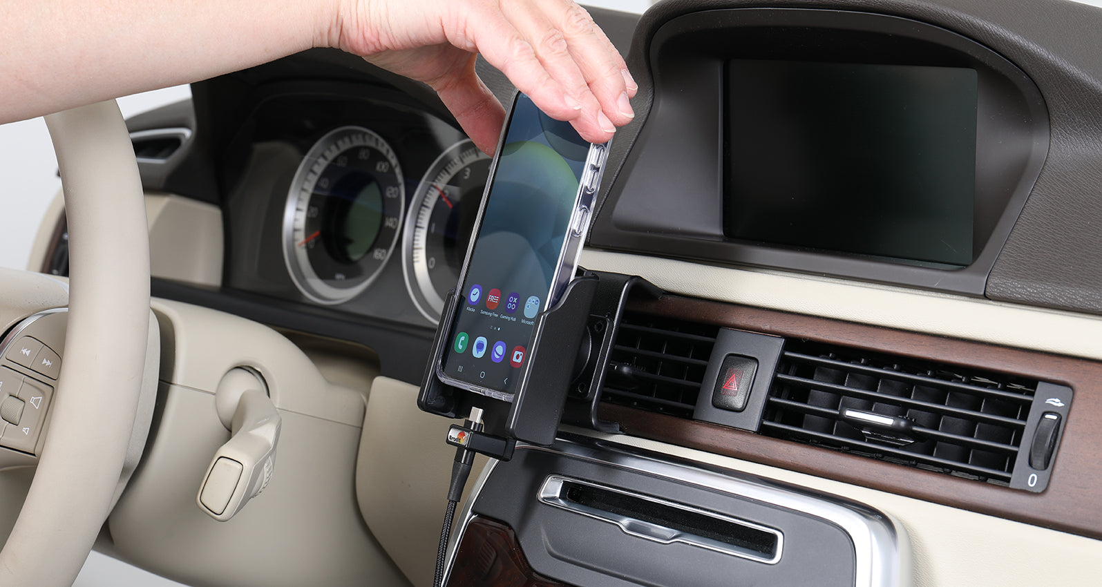 USB Type-C + autós töltővel, 2 USB-port: Type-A és Type-C. Csuklóval. 12/24 Volt. Brodit telefontokkal.