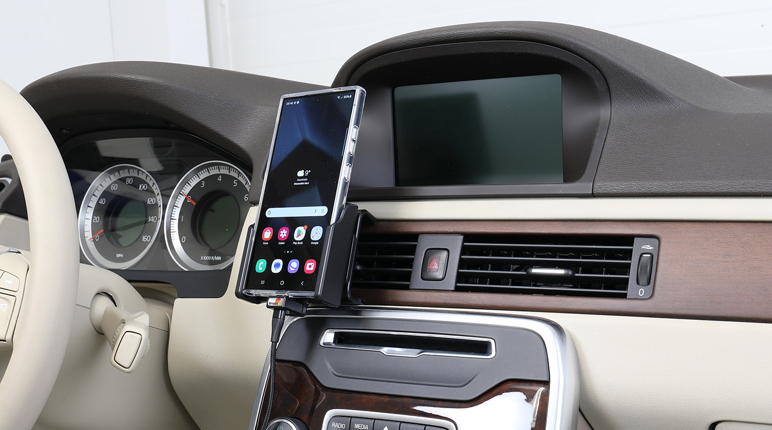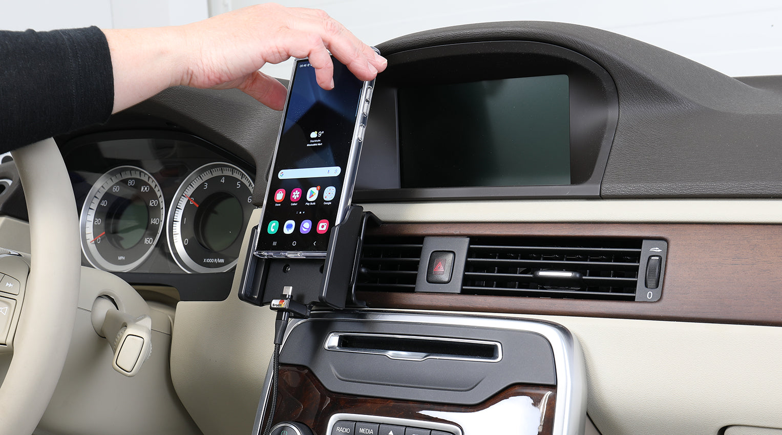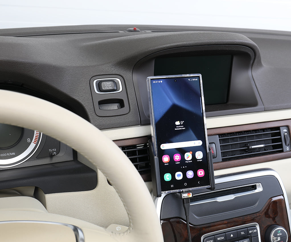 USB Type-C + autós töltővel, 2 USB-port: Type-A és Type-C. Csuklóval. 12/24 Volt. Brodit telefontokkal.