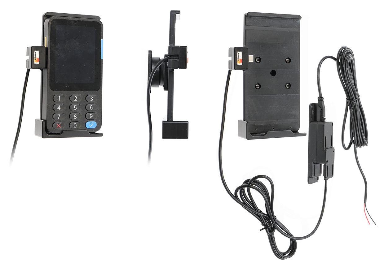 The holder is equipped with a tilt swivel so you can easily adjust the angle for better viewing, or switch between portrait and landscape mode. Tilts 17° and swivels 360°. Mounting plate 42x50 mm with 4 mm AMPS-holes. Made of high grade black ABS/Acetal plastic. Made in Sweden. Connect the power cable with a 2A fuse. Professional installation recommended. Attach onto a ProClip mounting platform.