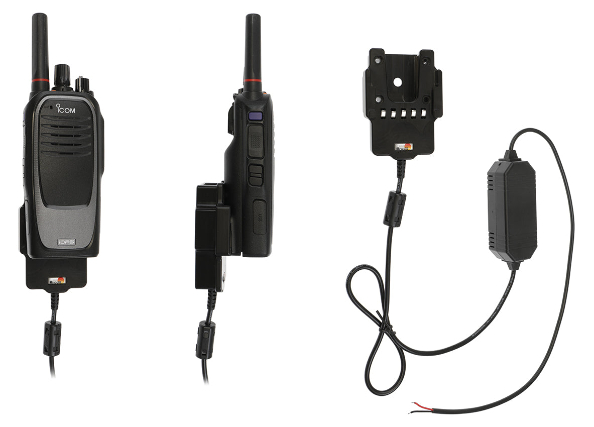 Vékony kialakítású tartó beépített töltővel. Li-Ion vagy Li-Poly akkumulátorhoz használható.