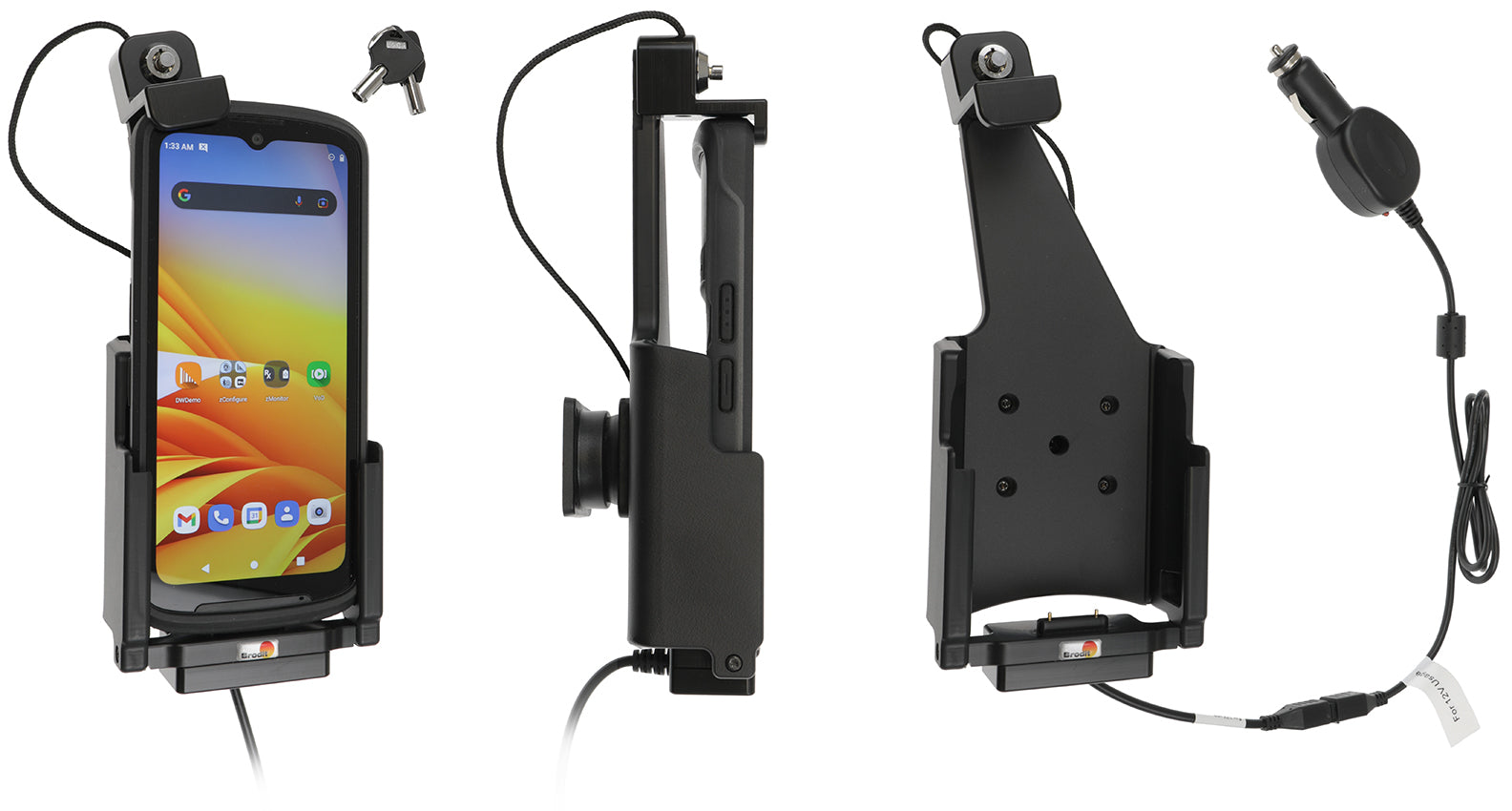 Aktív tartó szivargyújtóval, csuklóval. Easy-switch rendszerrel. Töltés pogo tűkkel. Zebra Rugged Boot tokkal. 3A töltés, 12/24V. 2 kulcs mellékelve.