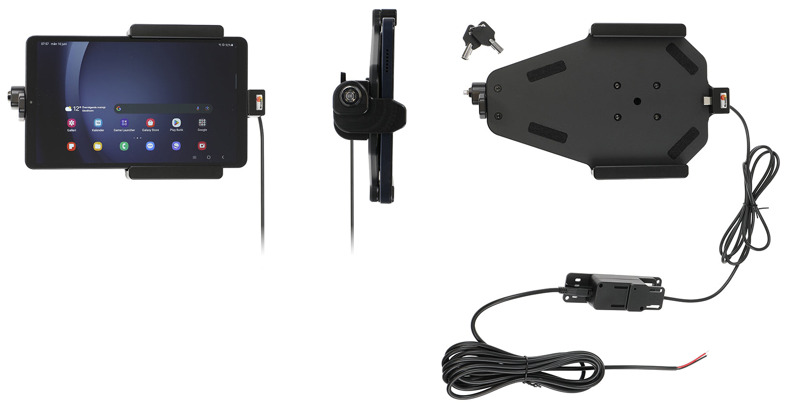 A táblagépnek a jármű műszerfalára történő felszerelése mindig az ügyfél saját felelősségére történik. A Brodit azt ajánlja, hogy a táblagépeket lábazati tartóval vagy Brodit fejtámla tartóval használja.