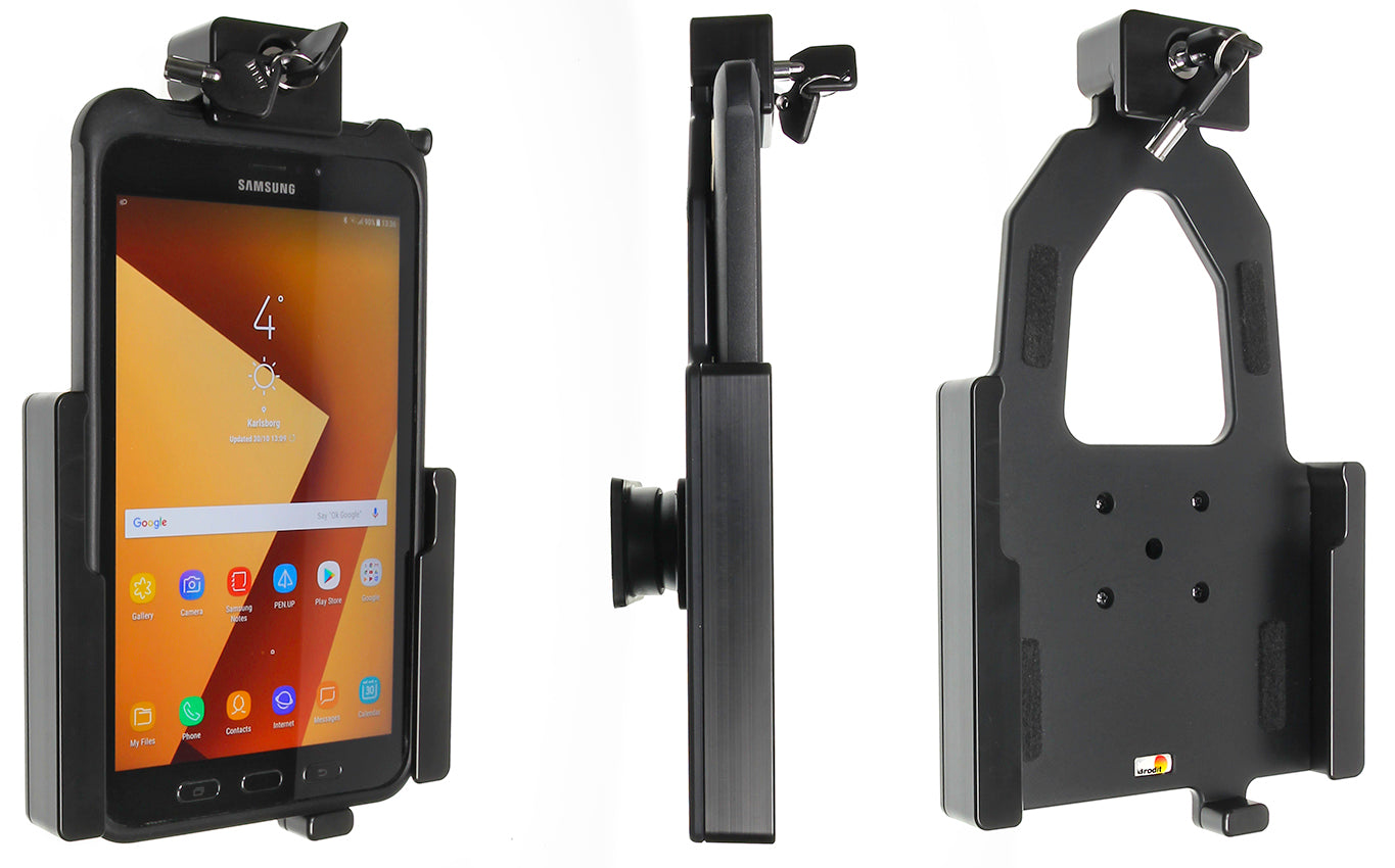 Passzív tartó csuklóval. Eredeti védőtokkal használt készülékhez. Zárral, 2 kulccsal.