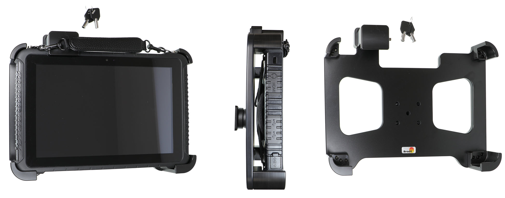 A tartó tökéletesen használható kiállításokon vagy üzletekben, vagy bárhol, ahol az a cél, hogy könnyen hozzáférhető legyen készüléke, de ne lehessen elmozdítani. A tartó extra erős műanyagból készült és zárral van ellátva. Kulcsra van szüksége a készülék eltávolításához: 2 kulcsot mellékeltünk. A tartó csuklóval van felszerelve, így állíthatósága miatt elkerülhetjük a fényvisszaverődést. Könnyen válthat a függőleges és vízszintes pozíciók között a tartó elfordításával.