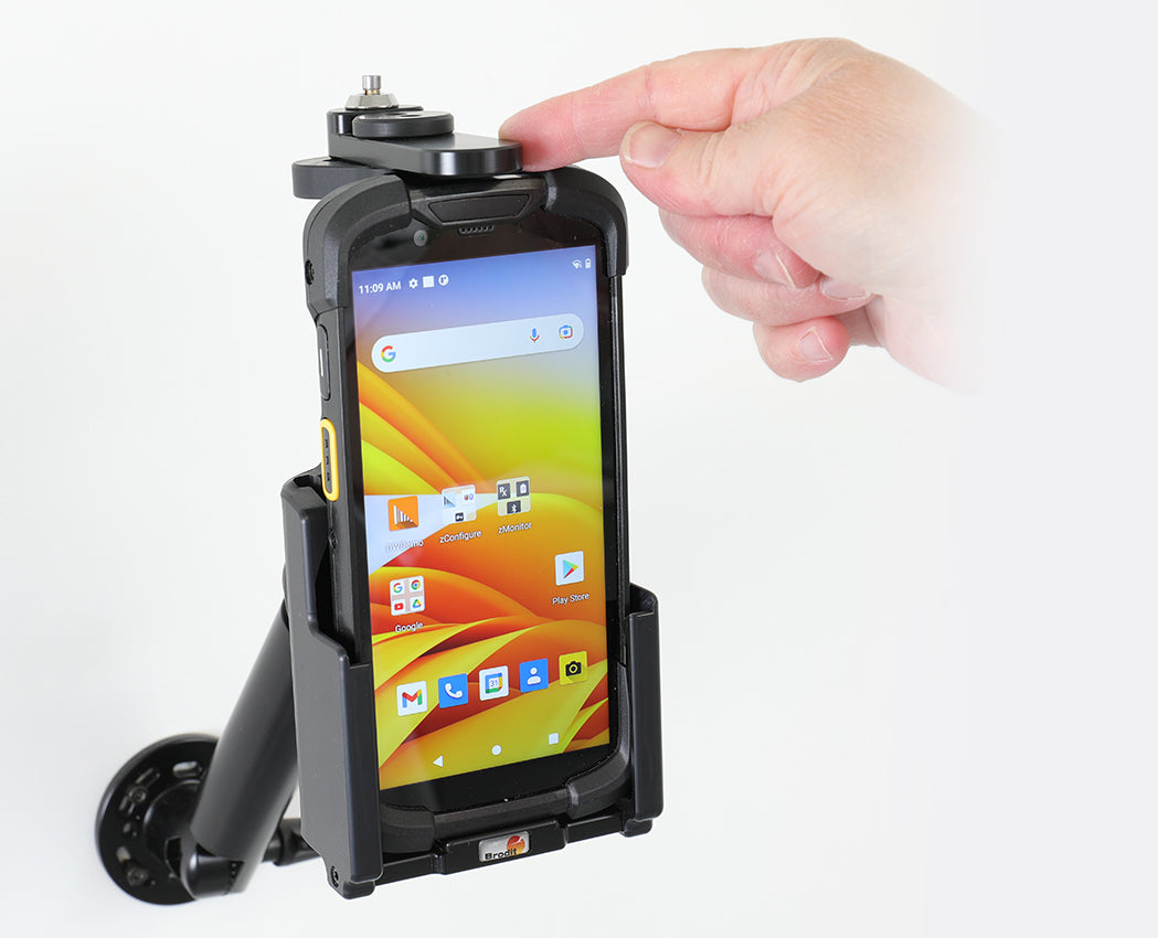 A tartó csuklóval forgatható, így könnyedén beállíthatja a szöget a jobb megtekintés érdekében, vagy átkapcsolhat a álló és a fekvő üzemmód között. 17°-ban dönthető és 360°-ban forgatható. Szerelőlemez 42x50 mm-es, 4 mm-es AMPS-lyukakkal. Kiváló minőségű fekete ABS/Acetál műanyagból készült. Svédországban készült. Pedestal Mountra vagy ProClip rögzítő platformra rögzíthető.