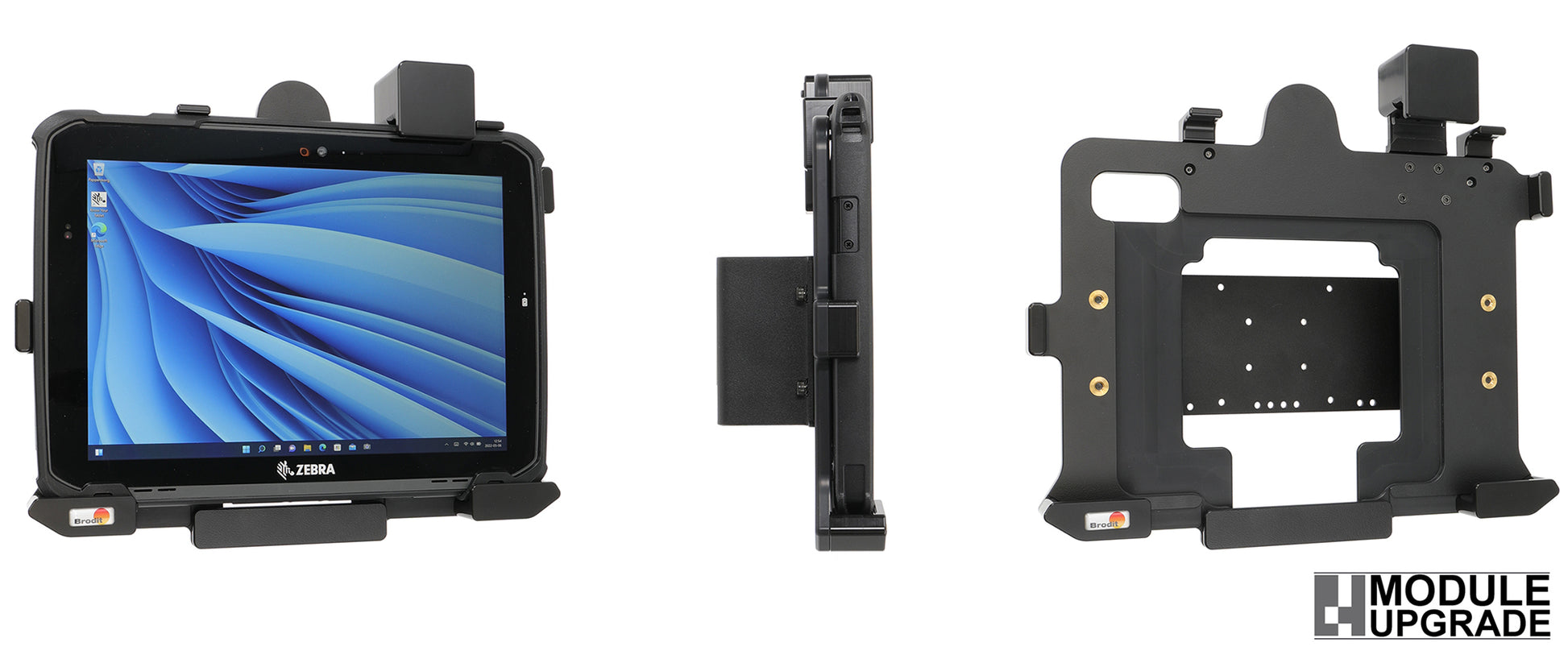 Rugós zárómechanikával. Bővítőmodullal/kézi pánttal vagy ezek nélkül használt készülékhez, Rugged Snapback tokkal. AMPS, VESA 75 furatokkal. Module Upgrade bölcső.