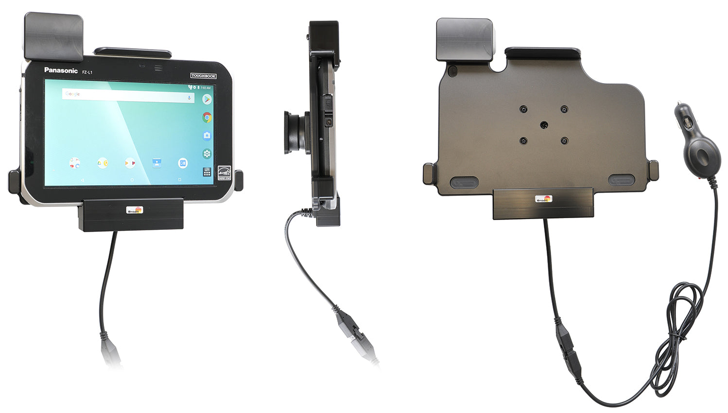 A Brodit határozottan nem ajánlja ezt a típusú rögzítési formát! Az autó műszerfalára rögzített tablet az ügyfél saját döntése, az ő felelőssége. A Brodit a fejtámlára való rögzítést javasolja, a fejtámlára rögzíthető állvány segítségével.