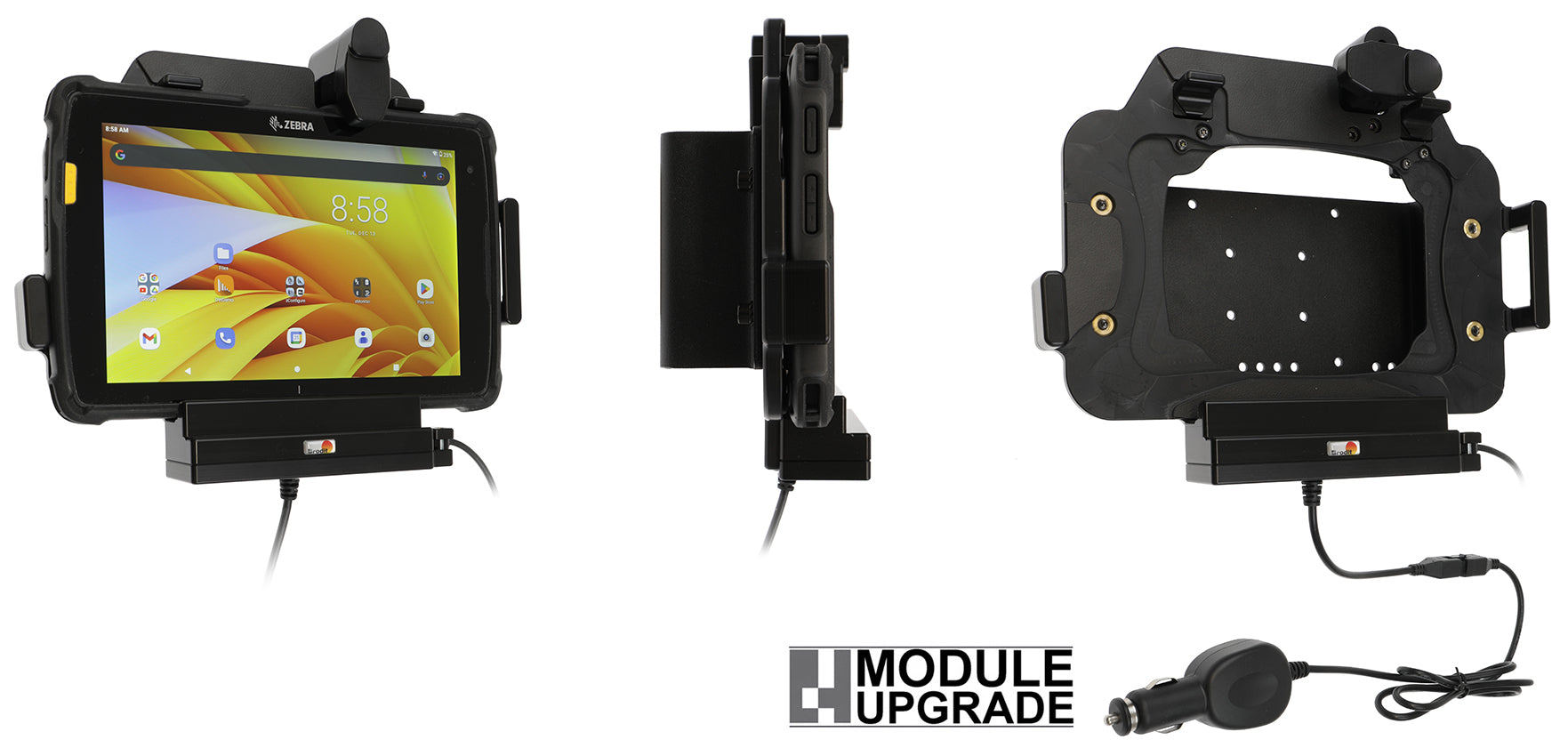 Aktív tartó szivargyújtóval. Rugged Boot / Exoskeleton tokos készülékhez, Zebra bővítőháttal. Modulbővítésre alkalmas. Easy-switch rendszerrel, USB Hosttal.