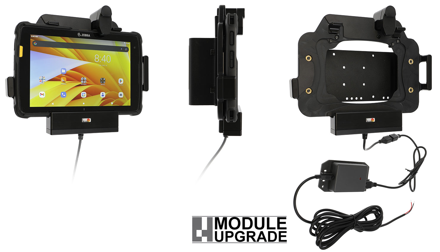 Aktív tartó fix beépítéshez. Rugged Boot / Exoskeleton tokos készülékhez, Zebra bővítőháttal. Modulbővítésre alkalmas. Easy-switch rendszerrel.