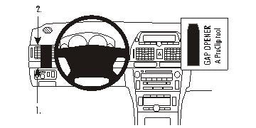 Figyelem! Összeszerelés előtt kérjük, figyelmesen olvassa el a használati utasítást és nézze meg az ábrákat, mielőtt rögzíti a ProClip-et! 1. Nyomja a mellékelt réstágítót a műszerfal és a panel közé, hogy kitágítsa a rést. 2. Nyomja a ProClip alsó, hajlított részét a résbe, közvetlenül a réstágító mellett. Nyomja amíg nem érzi, hogy a helyére ugrott. Húzza ki a réstágítót. 3. Nyomja a réstágítót a légrács kerete és a műszerfal közé. Nyomja a ProClip felső, hajlított részét a résbe, közvetlenül a réstágító mellett. Nyomja amíg nem érzi, hogy a helyére ugrott. Húzza ki a réstágítót. 4. A ProClip a helyére került. |