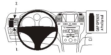 Figyelem! Összeszerelés előtt kérjük, figyelmesen olvassa el a használati utasítást és nézze meg az ábrákat, mielőtt rögzíti a ProClip-et! 1. Nyomja a mellékelt réstágítót a műszerfal és a kapcsoló panel körüli keret közé, hogy kitágítsa a rést. Távolítsa el az öntapadó felület borítását a ProClipen. Nyomja a ProClip alsó, lekerekített élét a résbe, közvetlenül a réstágító mellett. 2. Hajtsa a ProClip felső részét fölfelé, hogy a lekerekített alsó él beakadjon a kapcsoló panel körüli keret mögé. Húzza ki a réstágítót. Helyezze a réstágítót a műszerfal és a légrács körüli keret közé, közben nyomja előre a ProClip felső részét, hogy a hajlított felső él beakadjon a résbe, közvetlenül a réstágító mellett. 3. Húzza ki a réstágítót. Nyomja lefelé a ProClip tetejét, hogy a hajlított él teljesen belemenjen a résbe. 4. A ProClip a helyére került. |