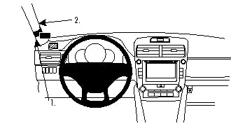 1. Használja a mellékelt alkoholos törlőkendőt, hogy megtisztítsa azt a területet, ahova a ProClipet felszereli. Húzza le a ragasztószalag borítását a ProClipen. Húzza fel/billentse fel az A-oszlopon található gumitömítést. Helyezze be a ProClip alsó részén található ferde élét a résbe, és akassza be az A-oszlop panel szélé mögé.