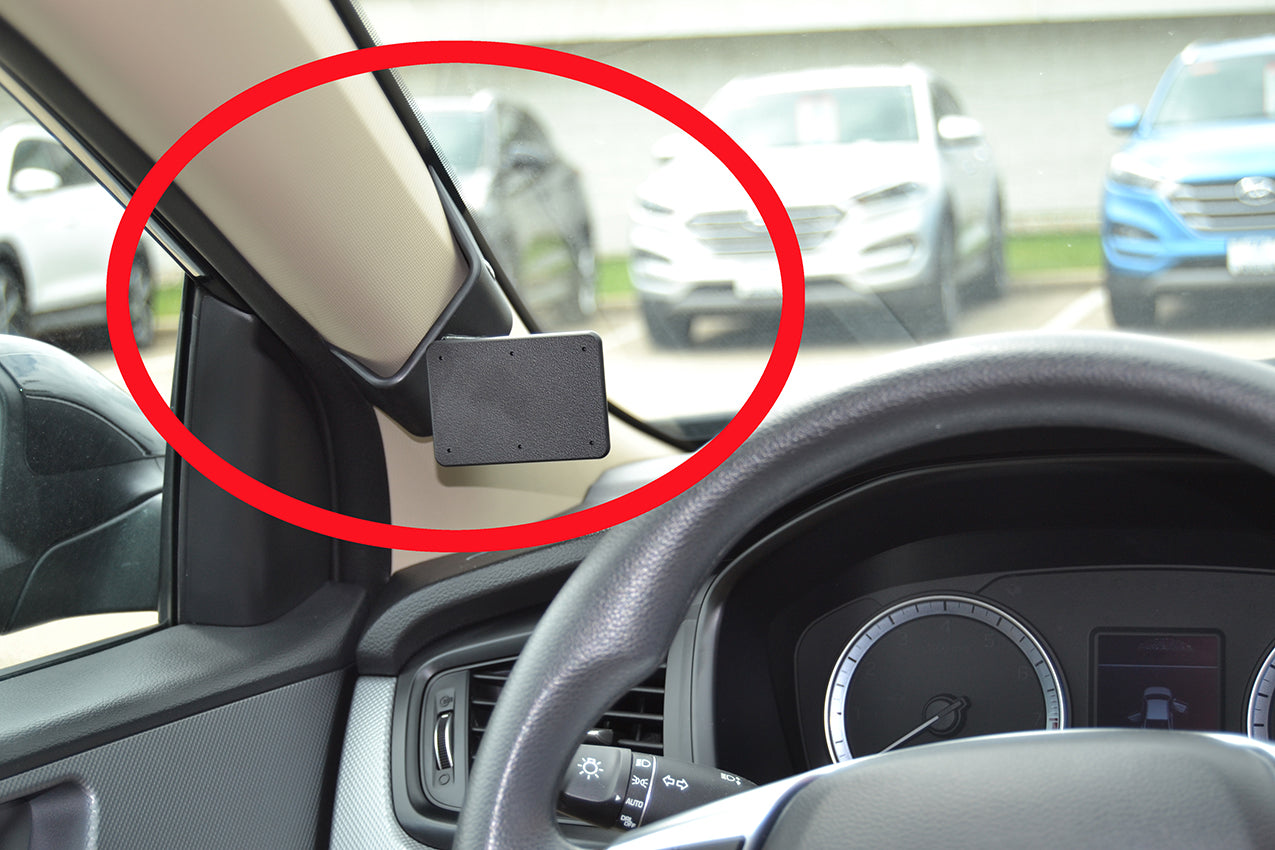 Mielőtt a ProClipet rögzítené, kérjük, figyelmesen olvassa el a használati útmutatót! 1. Tisztítsa meg azt a felületet, ahová kerülni fog a ProClip a mellékelt alkoholos párnával. Távolítsa el a ragasztócsík borítását a ProClipről. Húzza ki a az A-oszlopnál található gumitömítést. 2. Nyomja a ProClip élét a résbe és akassza az A-oszlop köré. 3. Nyomja a ProClip felső részét előre/felfelé, hogy az éle az A-oszlop köré akadjon. Nyomja lefelé a ProClip tetejét, hogy az éle a megfelelő helyre kerüljön. 4. A ProClip a helyére került. |