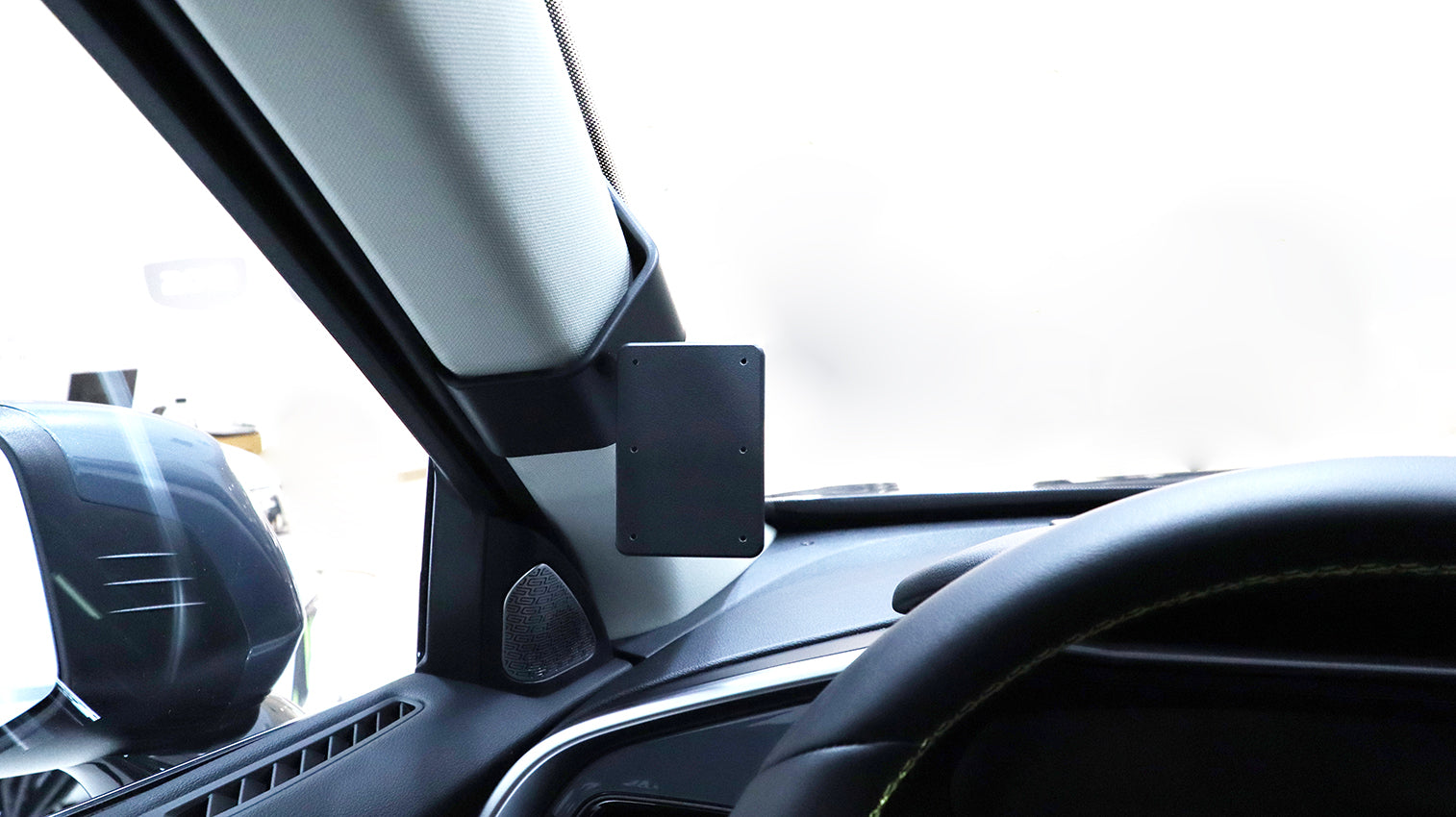 3. Nyomja felfelé/előre a tartót, és akassza a szögletes felső peremet az A-oszlop köré. Nyomja lefelé a tartó felső részét, hogy a szögletes él teljesen a helyére akadjon.