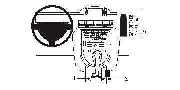 Kérjük, figyelmesen olvassa el a használati utasítást és nézze meg az ábrákat, mielőtt rögzíti a ProClip-et! 1. A mellékelt réstágítók keskeny végét nyomja a sebességváltót körülvevő panel és a konzol pereme közötti résbe, hogy kitágítsa azt! Távolítsa el a ProClip ragasztócsíkjának borítását! 2. Nyomja a ProClip bal oldali részének ívelt szegélyét a réstágítók között a résbe! Húzza a ProClip-et jobbra / lefelé úgy, hogy az ívelt szegélye beakadjon a sebességváltót körülvevő panel alá! Húzza ki a réstágítókat! 3. Nyomja a ProClip jobb oldali részét lefelé úgy, hogy annak szögletes szegélye beakadjon a konzol pereme alá! 4. A ProClip a helyére került. |