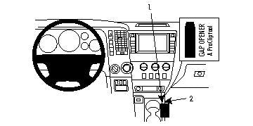 Kérjük, figyelmesen olvassa el a használati utasítást és nézze meg az ábrákat, mielőtt rögzíti a ProClip-et! 1. A mellékelt réstágító keskeny végét nyomja a pohártartó paneljének kerete és a konzol pereme közötti résbe, hogy kitágítsa azt! Távolítsa el a ProClip ragasztócsíkjának borítását! 2. Nyomja a ProClip bal oldali részének szögletes szegélyét a réstágító mellett a résbe! Húzza ki a réstágítót! 3. Nyomja a réstágítót a konzol oldalfalának pereme és a kárpit közötti résbe! Nyomja a ProClip jobb oldali részét erősen lefelé úgy, hogy annak szögletes szegélye beakadjon a konzol oldalfalának pereme alá a réstágító mellett! Addig nyomja, amíg meg nem látja vagy hallja/érzi, hogy bekattant a helyére! 4. A ProClip a helyére került. |