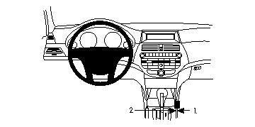 1. Távolítsa el a ragasztószalag fedelét a ProClip-ről. Akassza a ProClip jobb oldalán lévő ívelt élt a szőnyeg melletti konzol szélére.